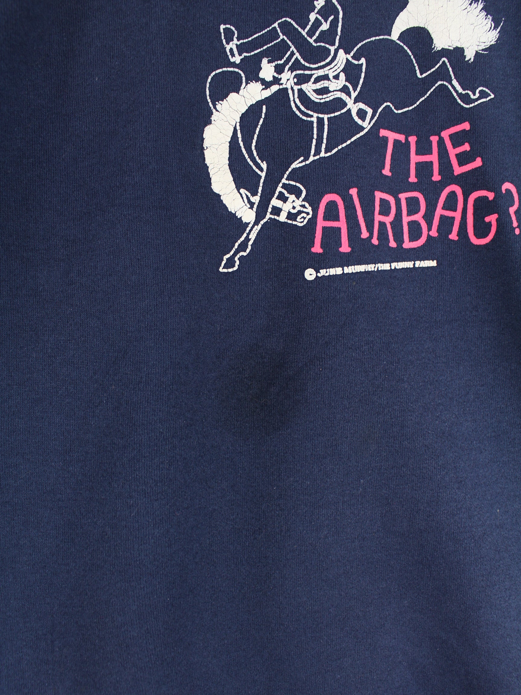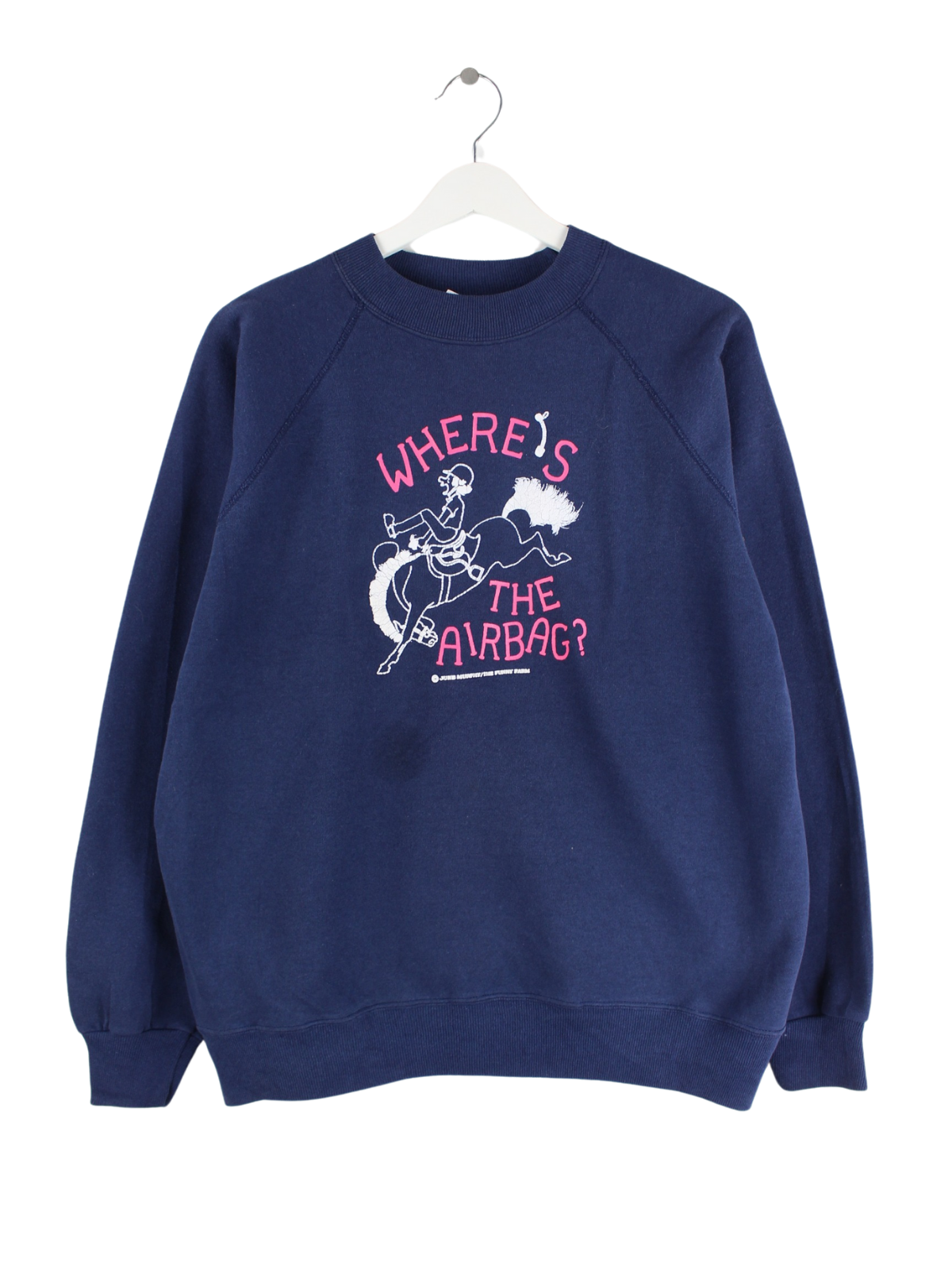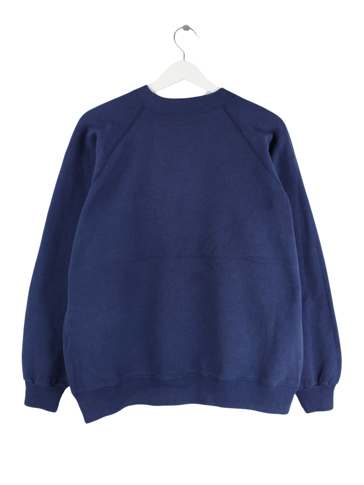 Sweater vom Label Hanes in Größe L aus den 90'ern. Er ist aus einer Baumwollmischung hergestellt und in Blau bei uns vorrätig. Mit chiquem Vintage Print.