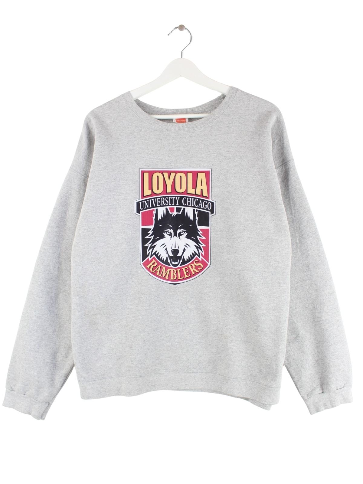 Sweater aus dem Hause Hanes in Größe L. Er ist aus einer Baumwollmischung hergestellt und in Grau bei uns zu bekommen. Mit seltenem Ramblers Print.