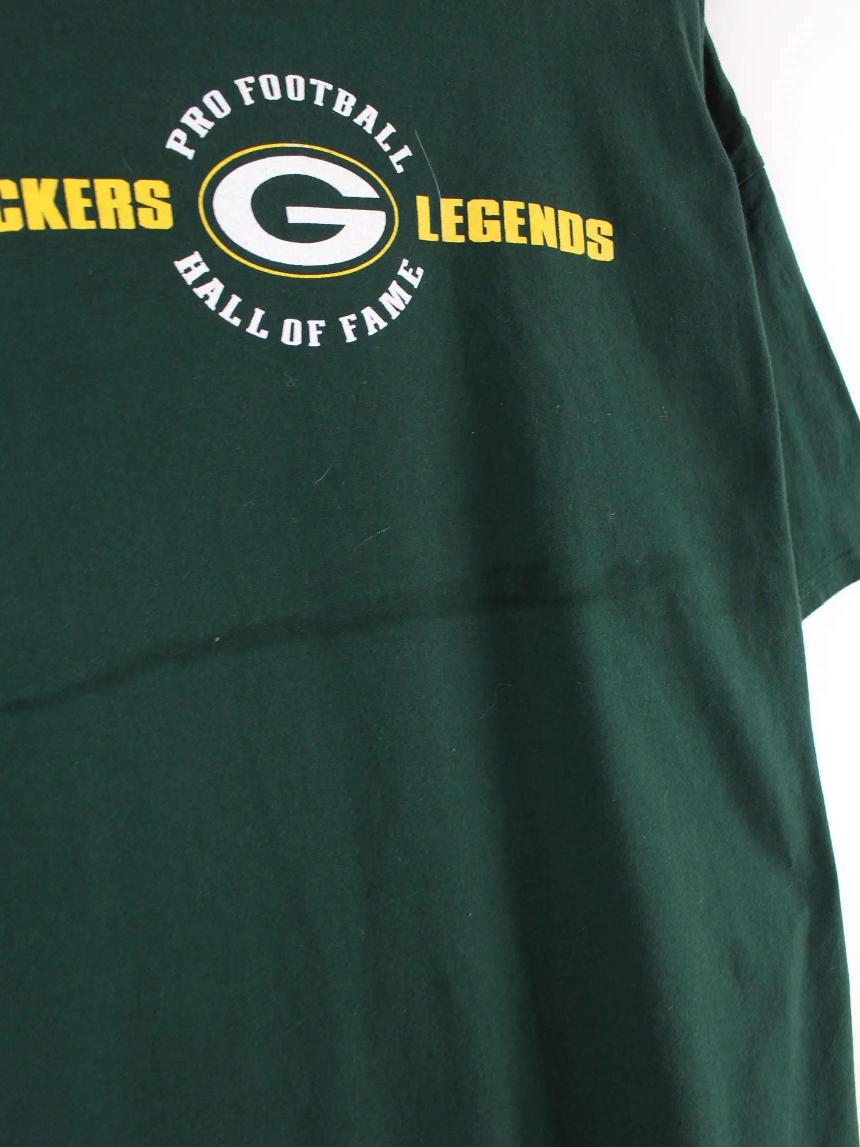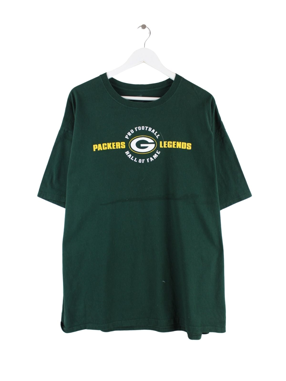T-Shirt der Marke Hanes in Größe XXL. Es ist aus einer Baumwollmischung hergestellt und in Grün auf Lager. Mit tollem G-Packers Print.