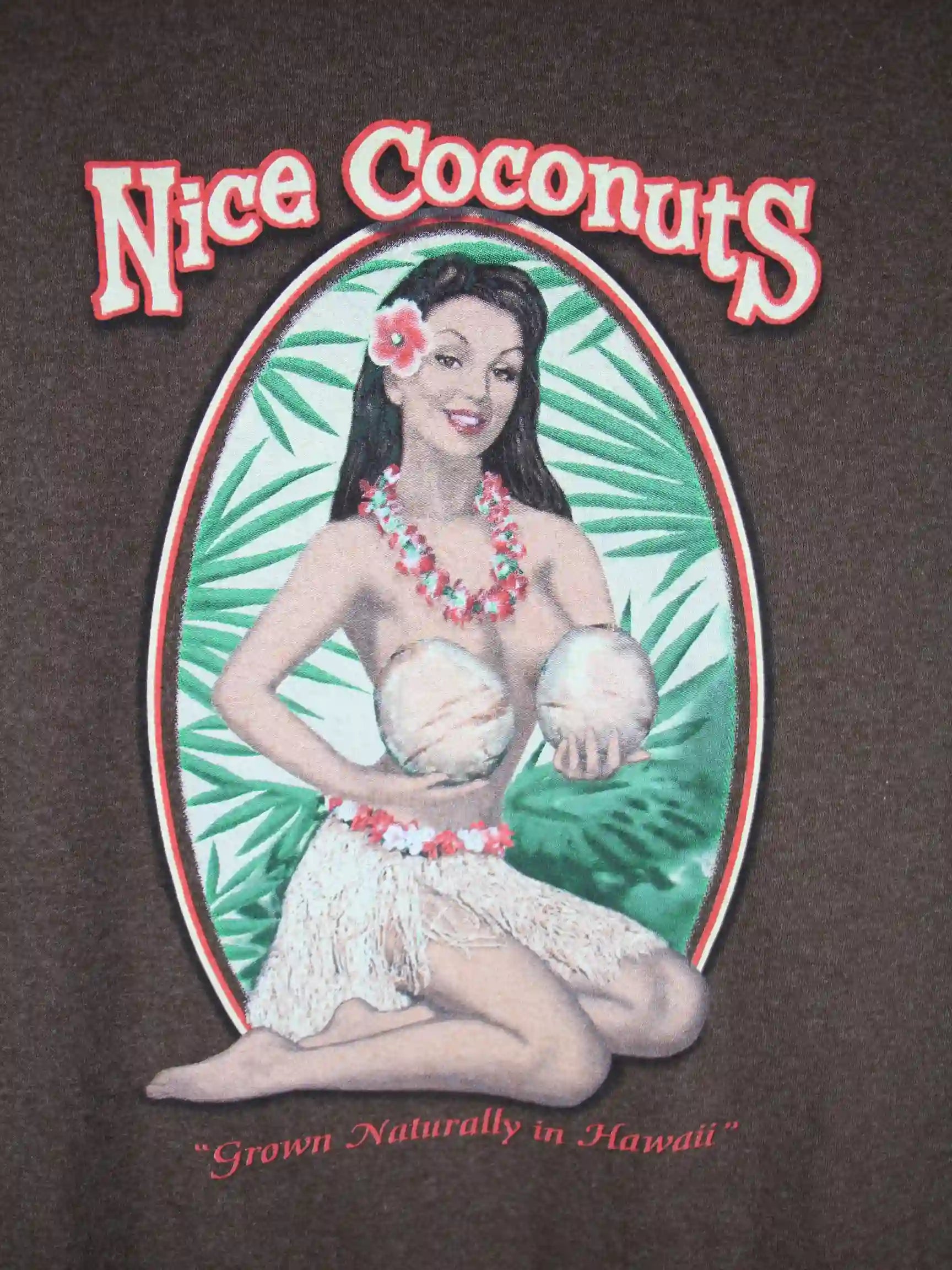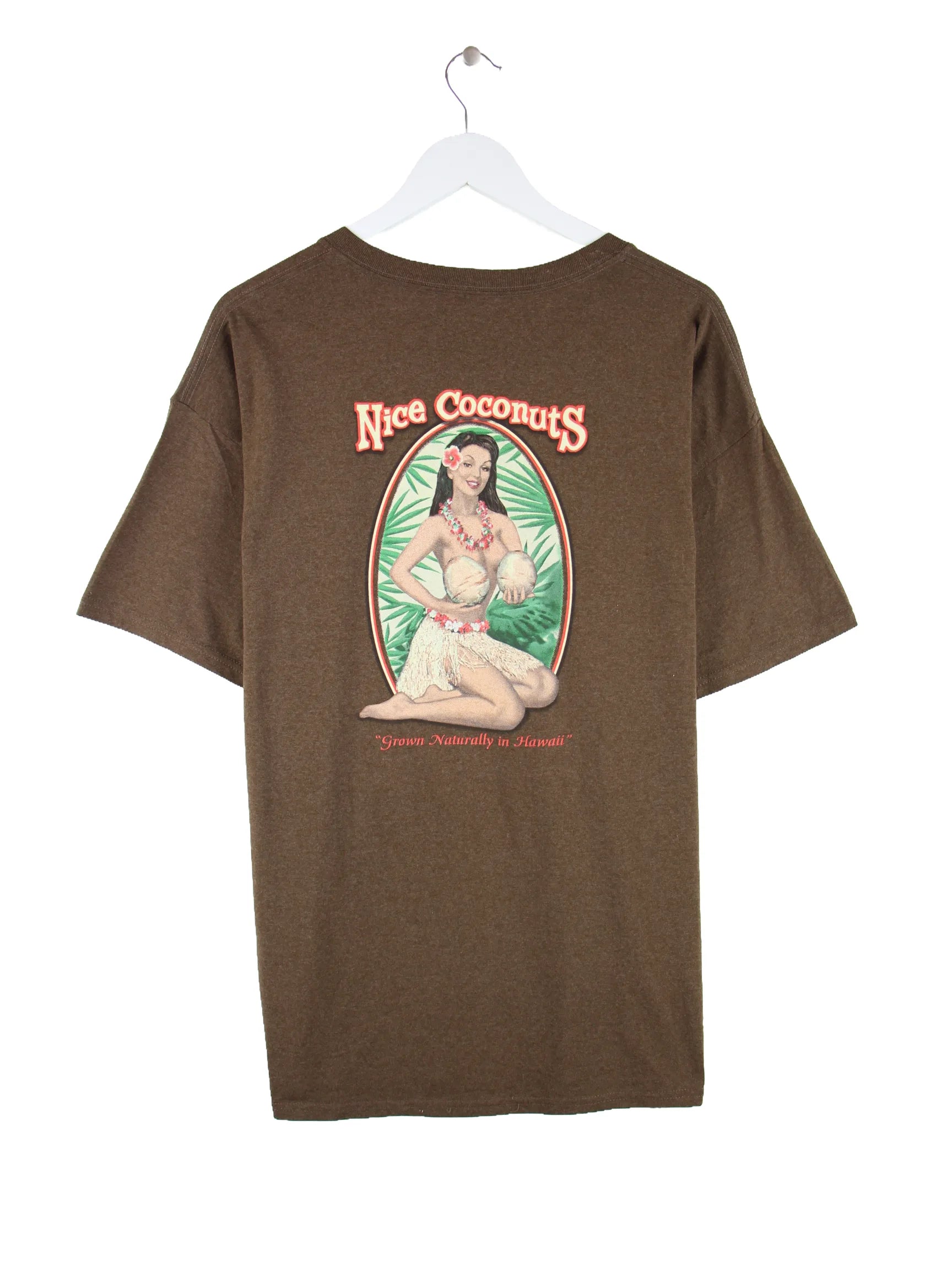 Hanes Hawaii Nice Coconut Lady Print T-Shirt Braun XL