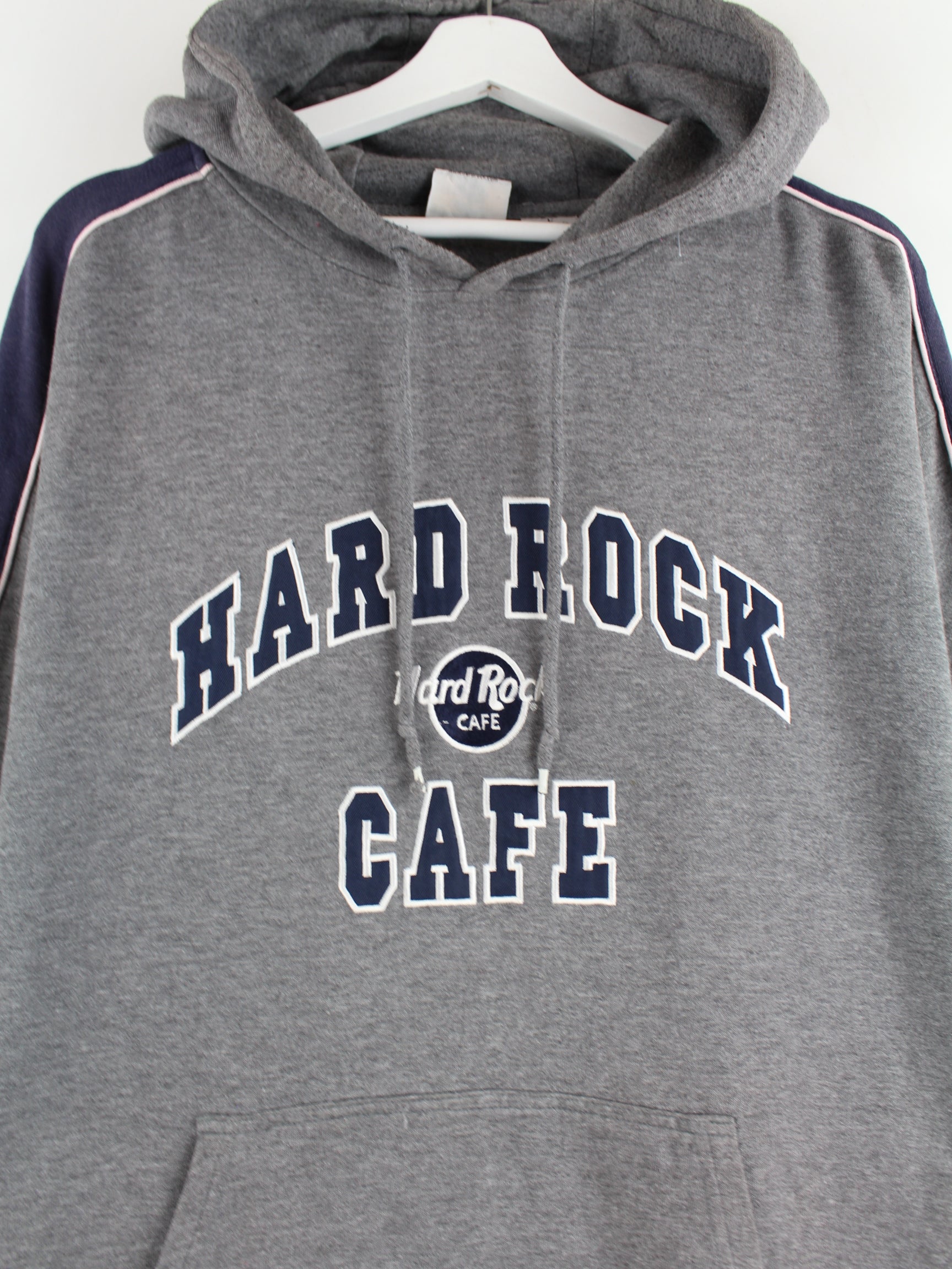Hoodie from the brand Hard Rock Cafe with embroidery in size L. It is made from a cotton blend and is available in grey.