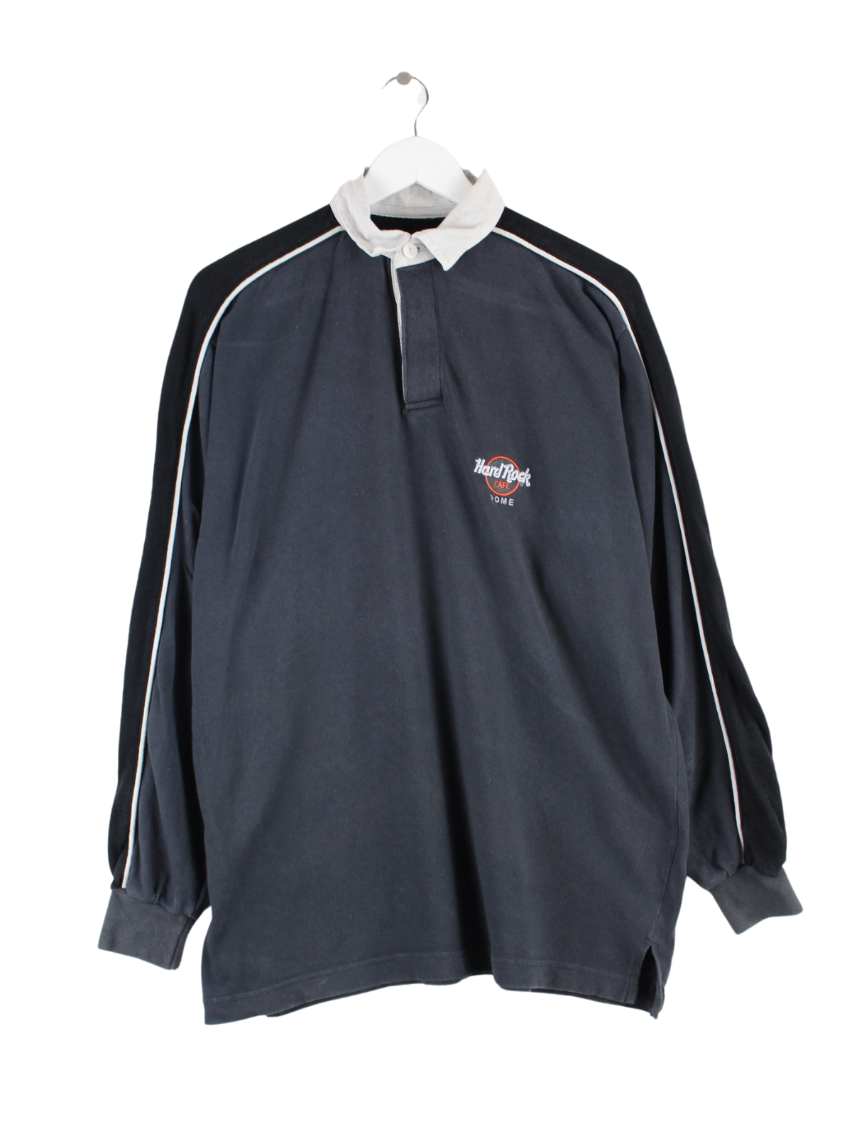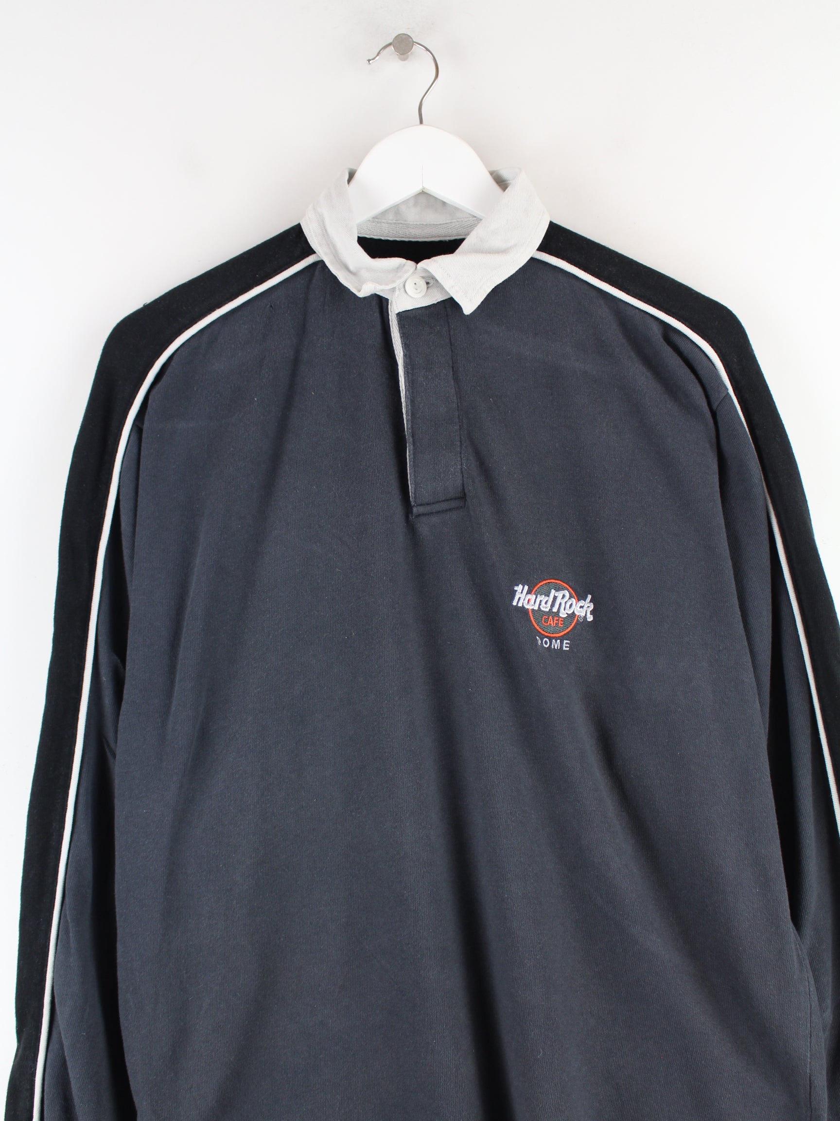 Hard Rock Cafe 00s Rome Embroidered Long Sleeve Polo Gray L