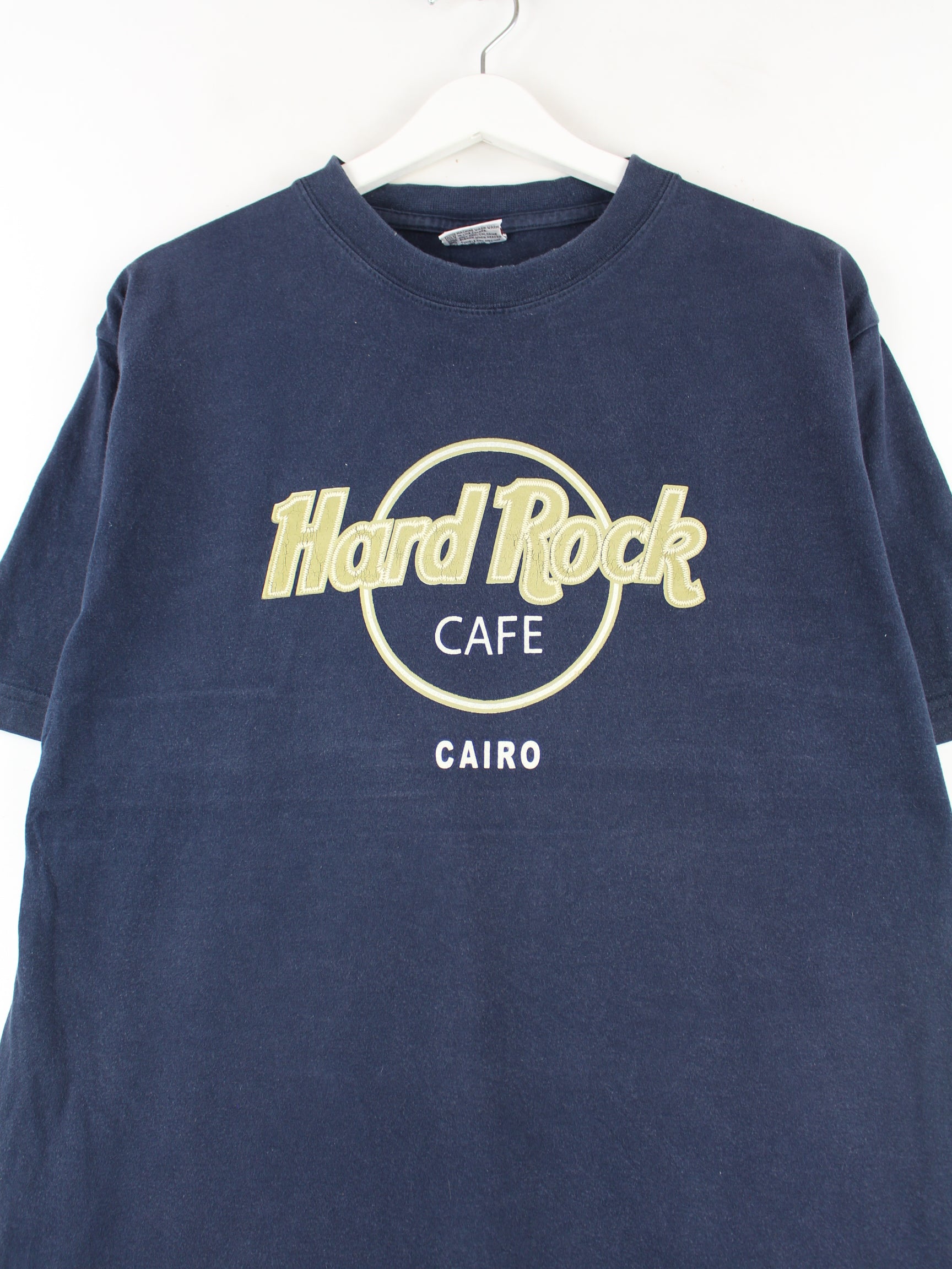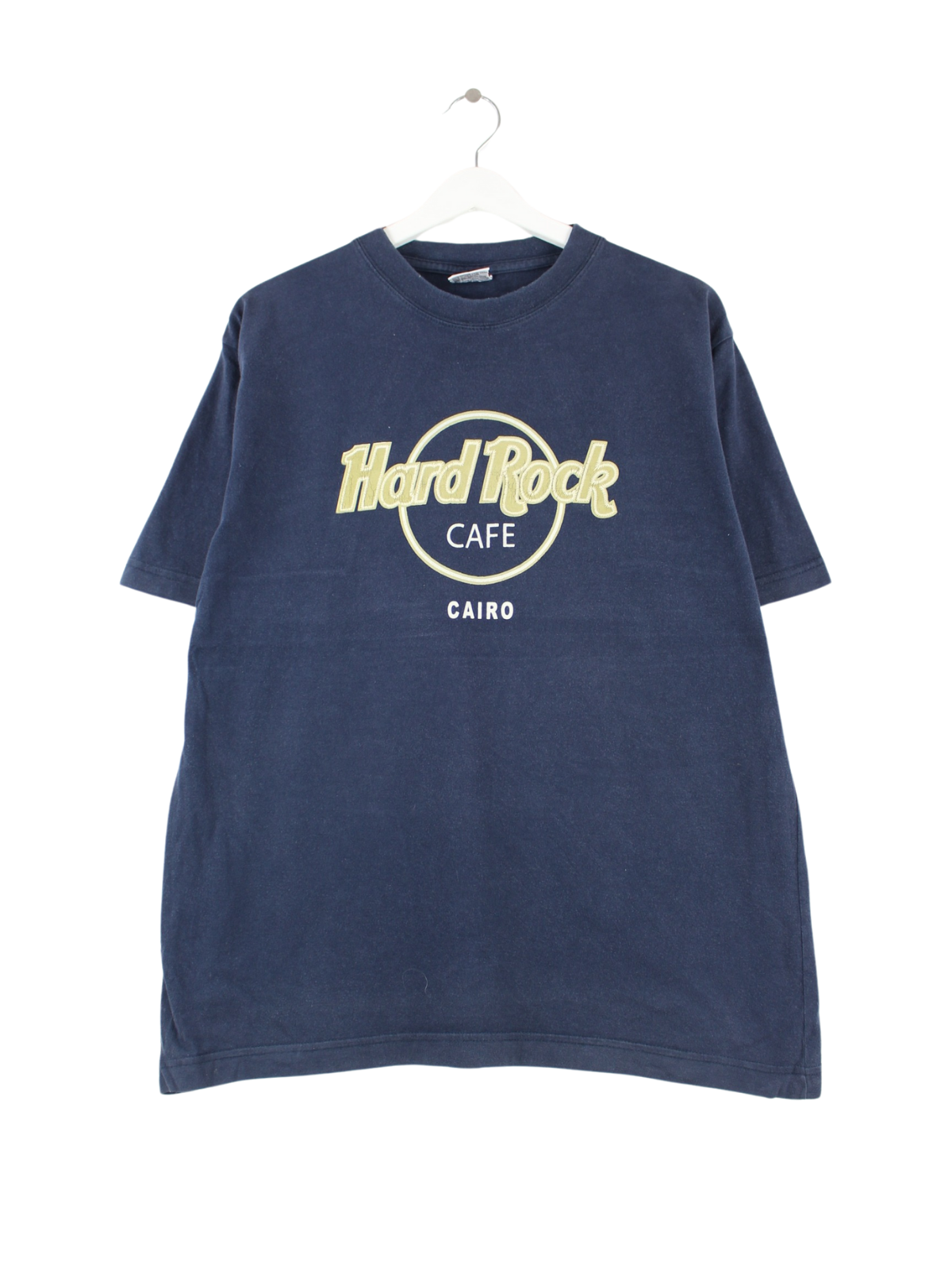 Blue T-shirt from the Hard Rock Cafe brand from the 90's in size L. It is made of a cotton blend and is in good condition. With a great Cairo print.