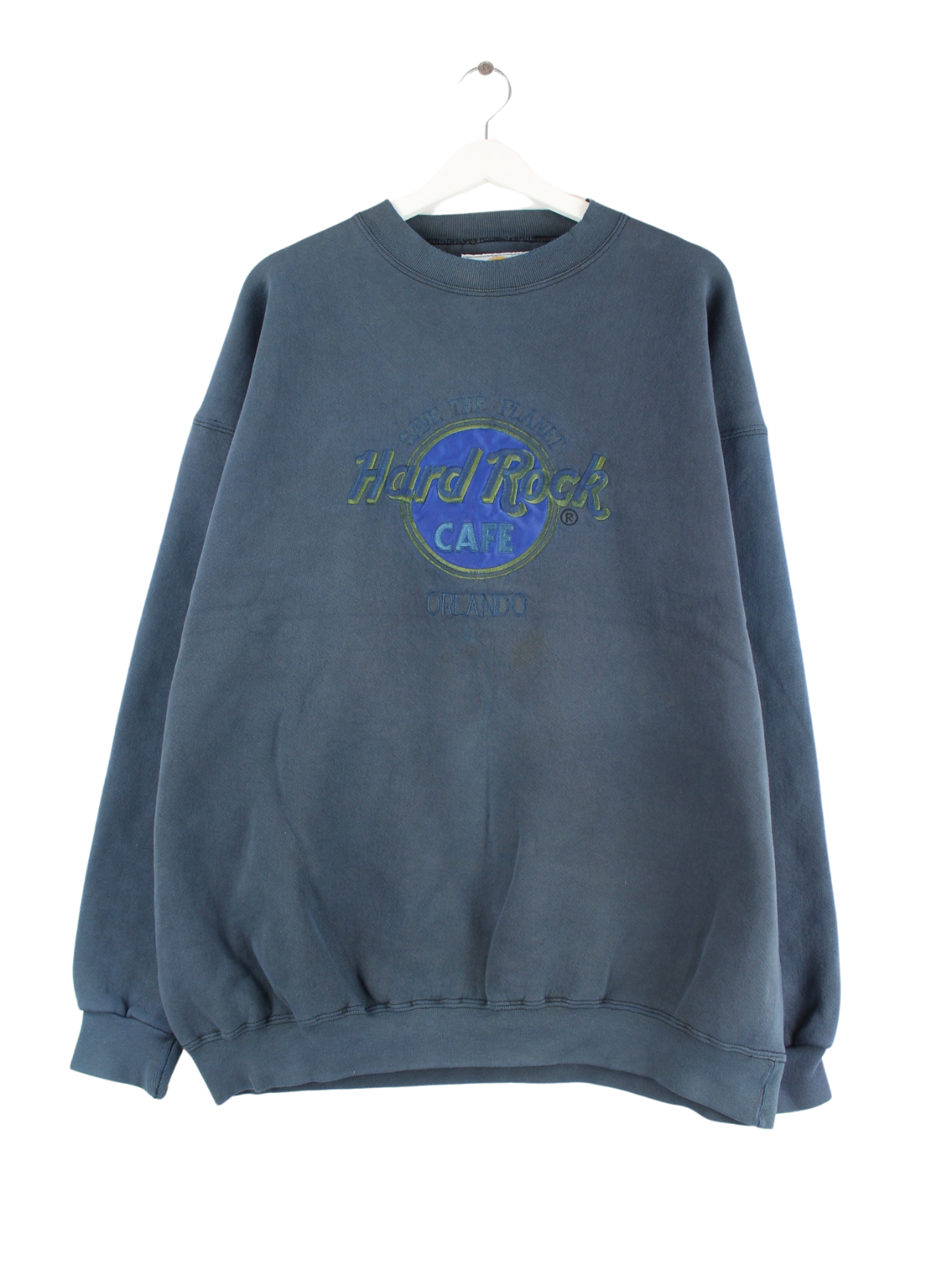 Sweater from the Hard Rock Cafe label with embroidery in size XL from the 90's. It is made from a cotton blend and is available in blue.