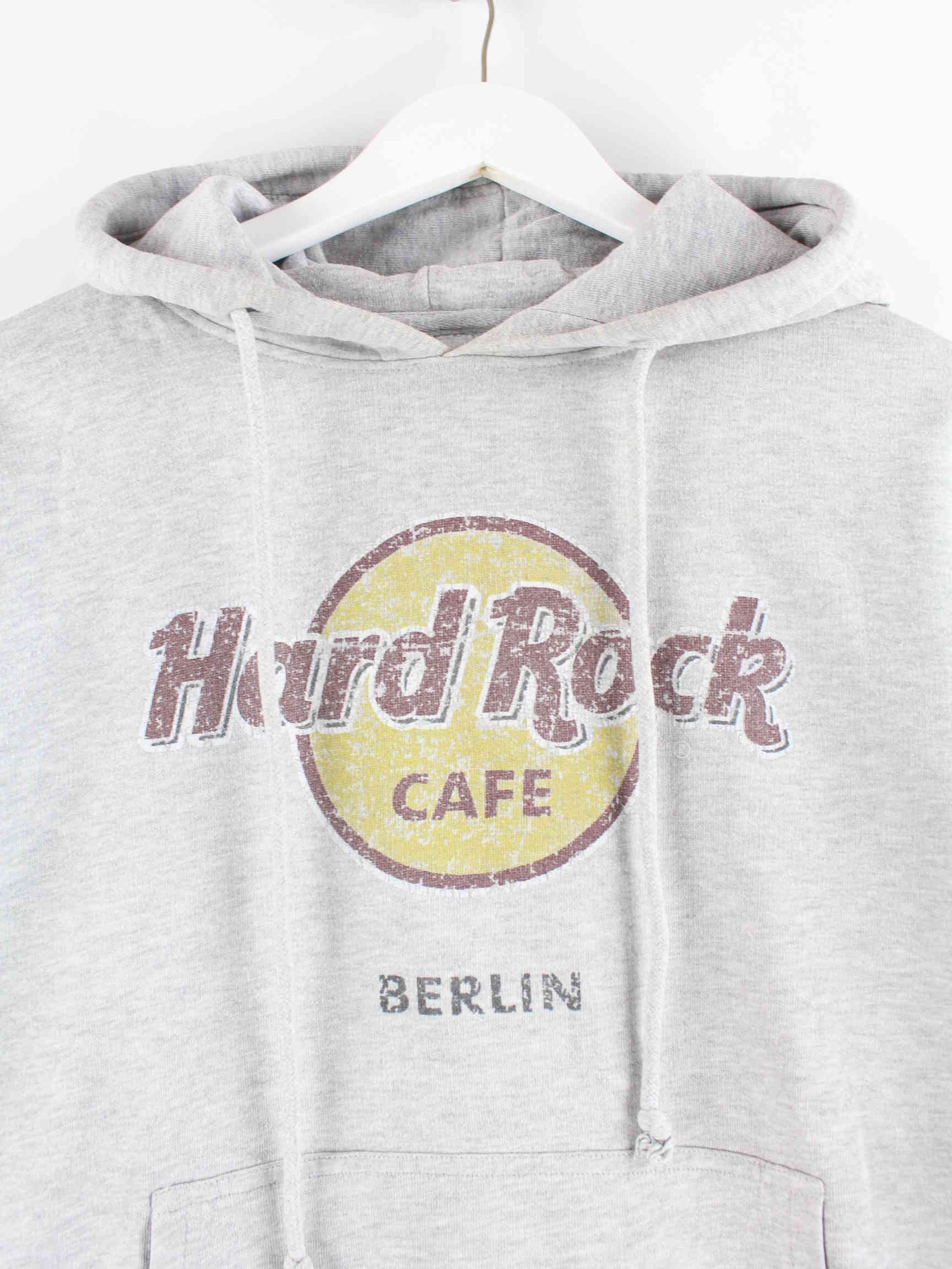 Gray hoodie from the Hard Rock Cafe brand in size M. It is made from a cotton blend. We would describe the condition as 'in order' (see pictures). With a chic Berlin print.