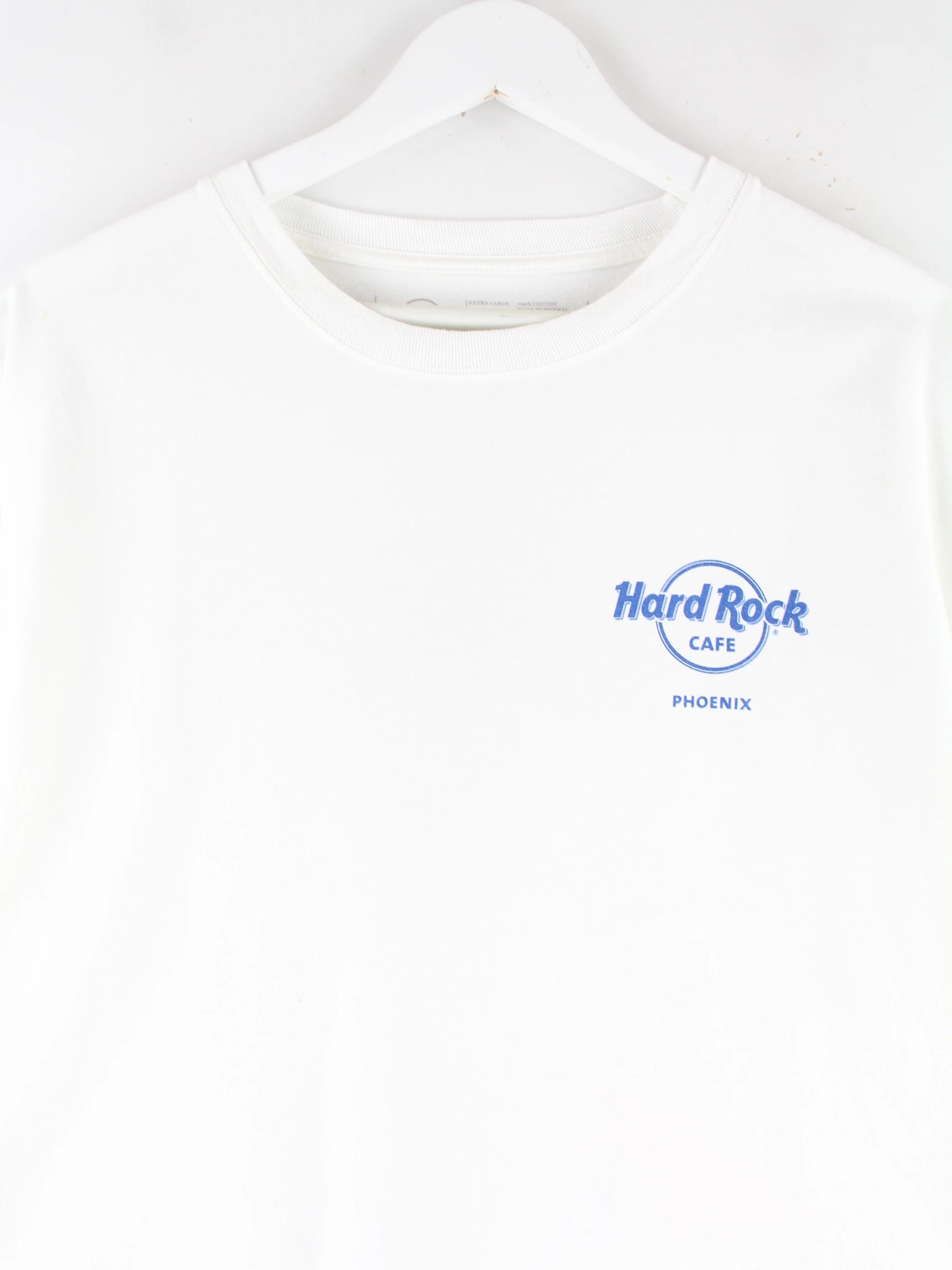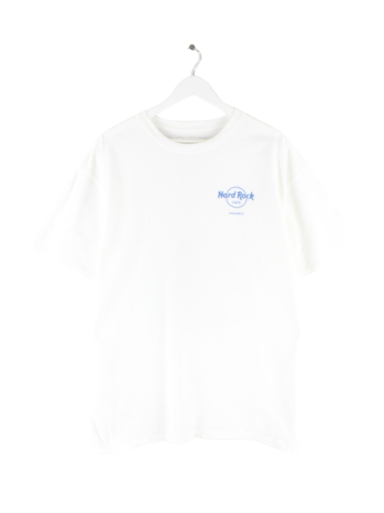 Weißes T-Shirt von Hard Rock Cafe in Größe XL. Es ist aus Baumwolle hergestellt und in gutem Zustand bei uns vorrätig. Mit chiquem Phoenix Print.