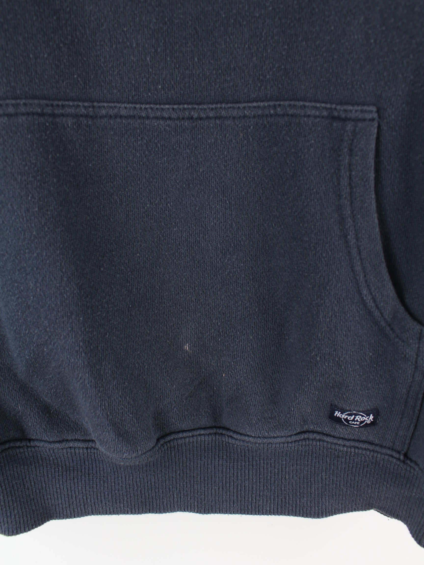 Blauer Hoodie mit gesticktem Logo der Brand Hard Rock Cafe in Größe S. Er ist aus einer Baumwollmischung angefertigt und in sehr gutem Zustand im Angebot.
