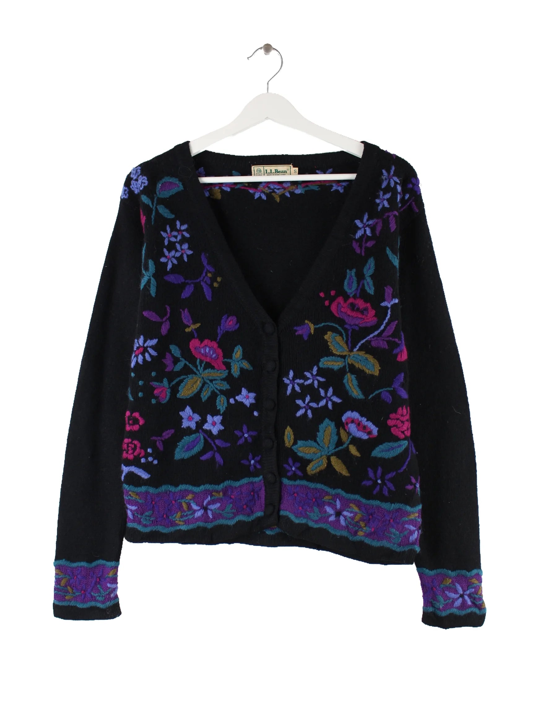 L.L. Bean Damen 00s Flower Woll Cardigan Strickjacke Schwarz S