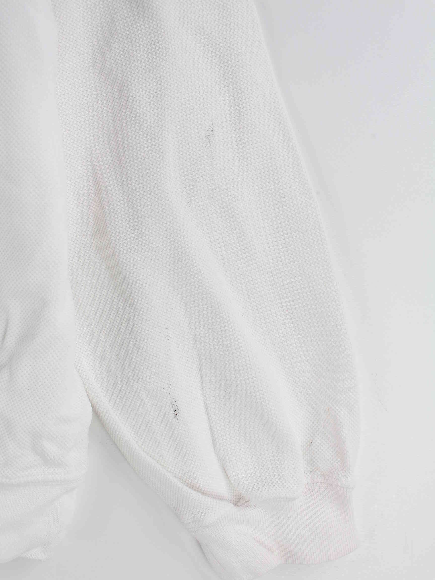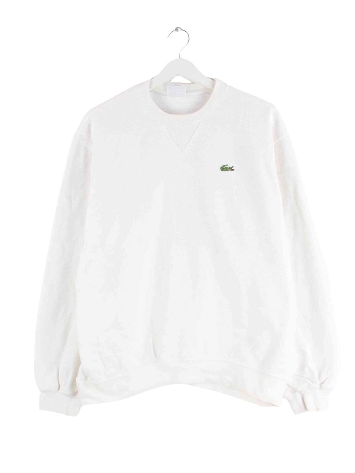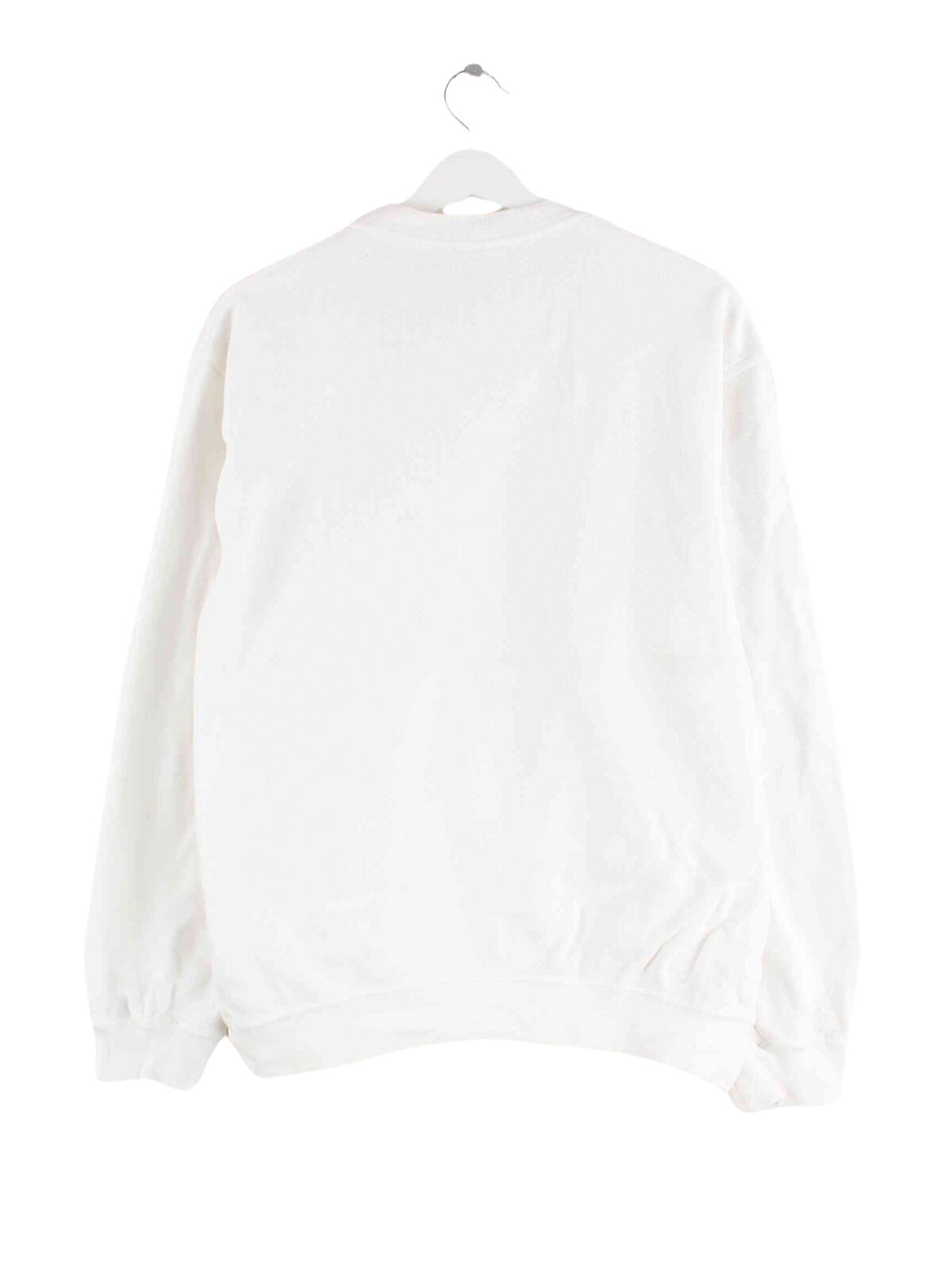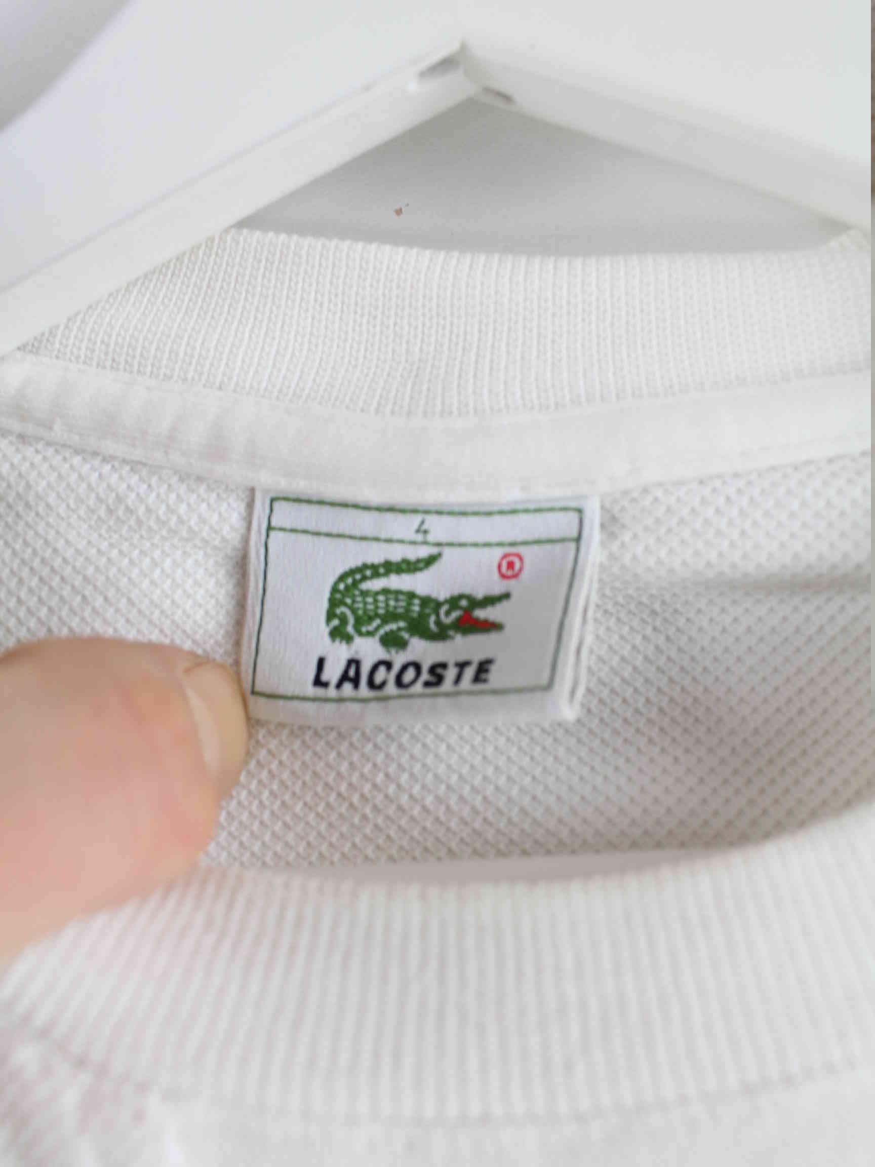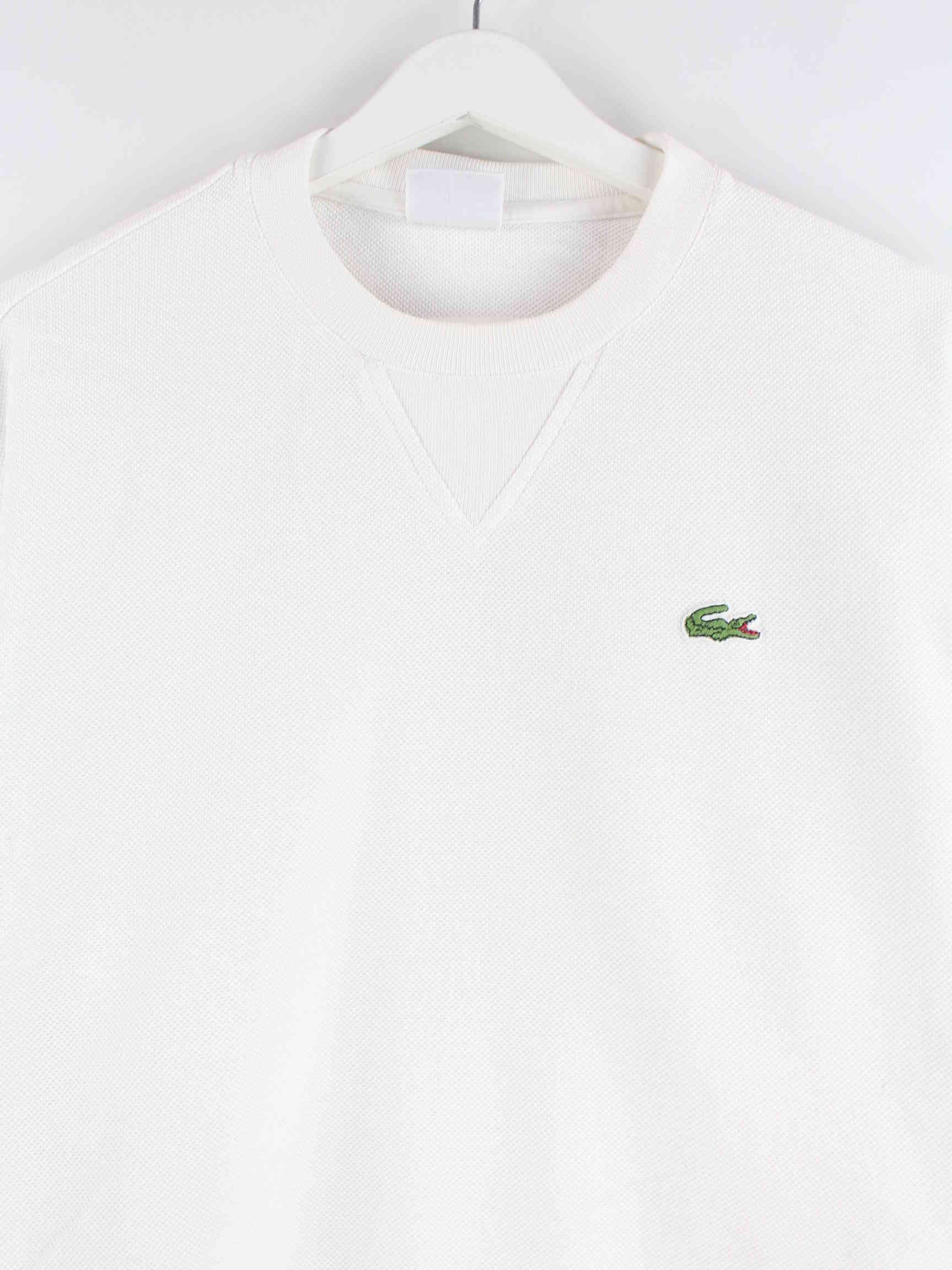 Sweater from the Lacoste label in size M. It is made of a cotton blend and is available in white.