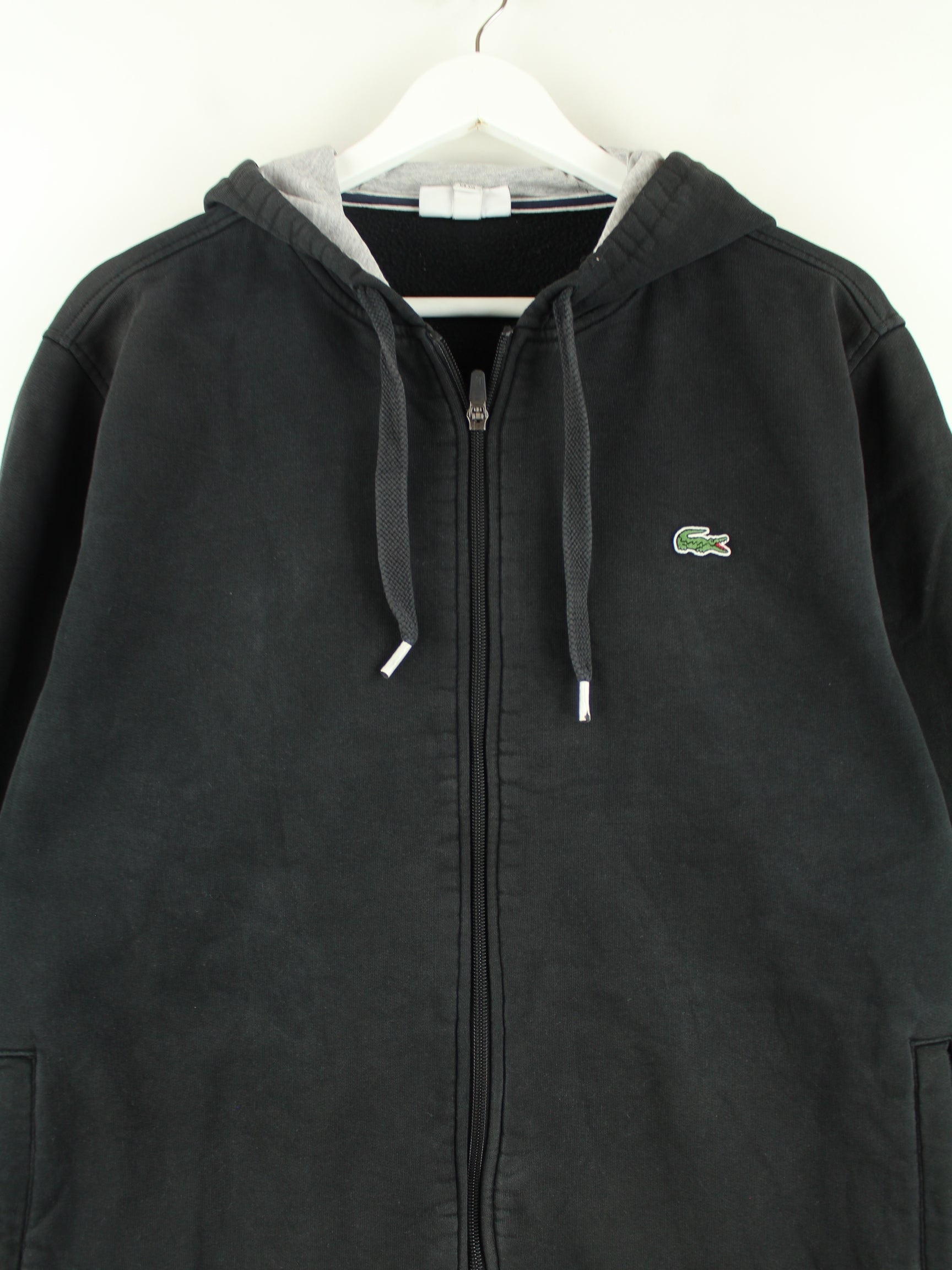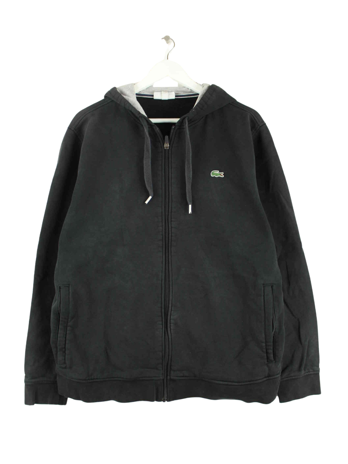 Hoodie from the brand Lacoste with zip in size XXL. It is made from a cotton blend and is available in black.