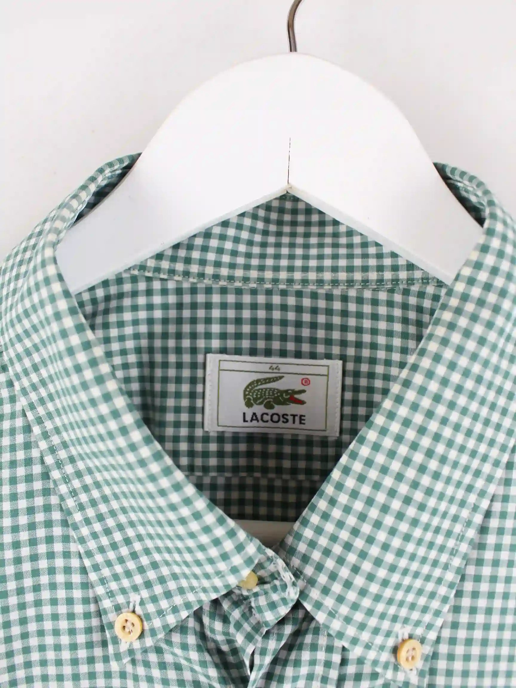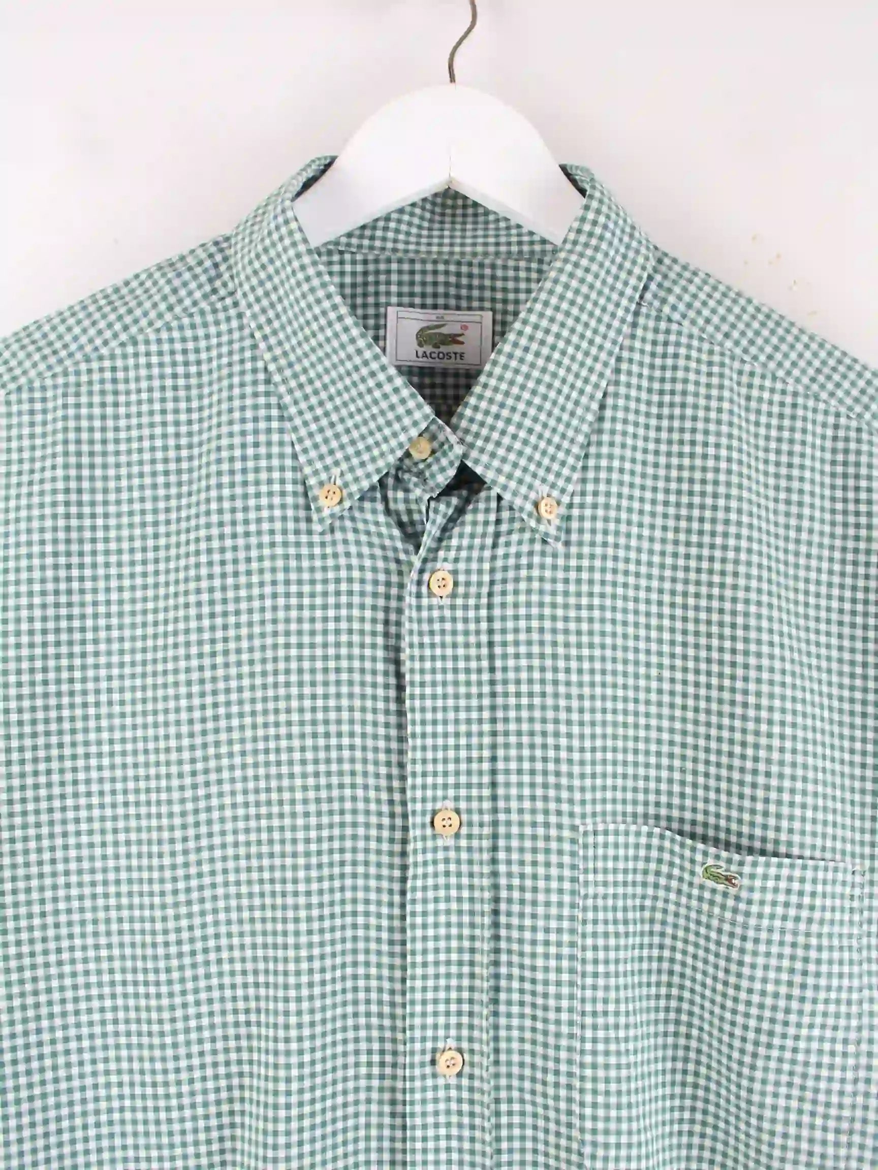 Grünes Freizeit Hemd aus dem Hause Lacoste in Größe XXL. Es ist aus Baumwolle und in gutem Zustand bei uns vorrätig.