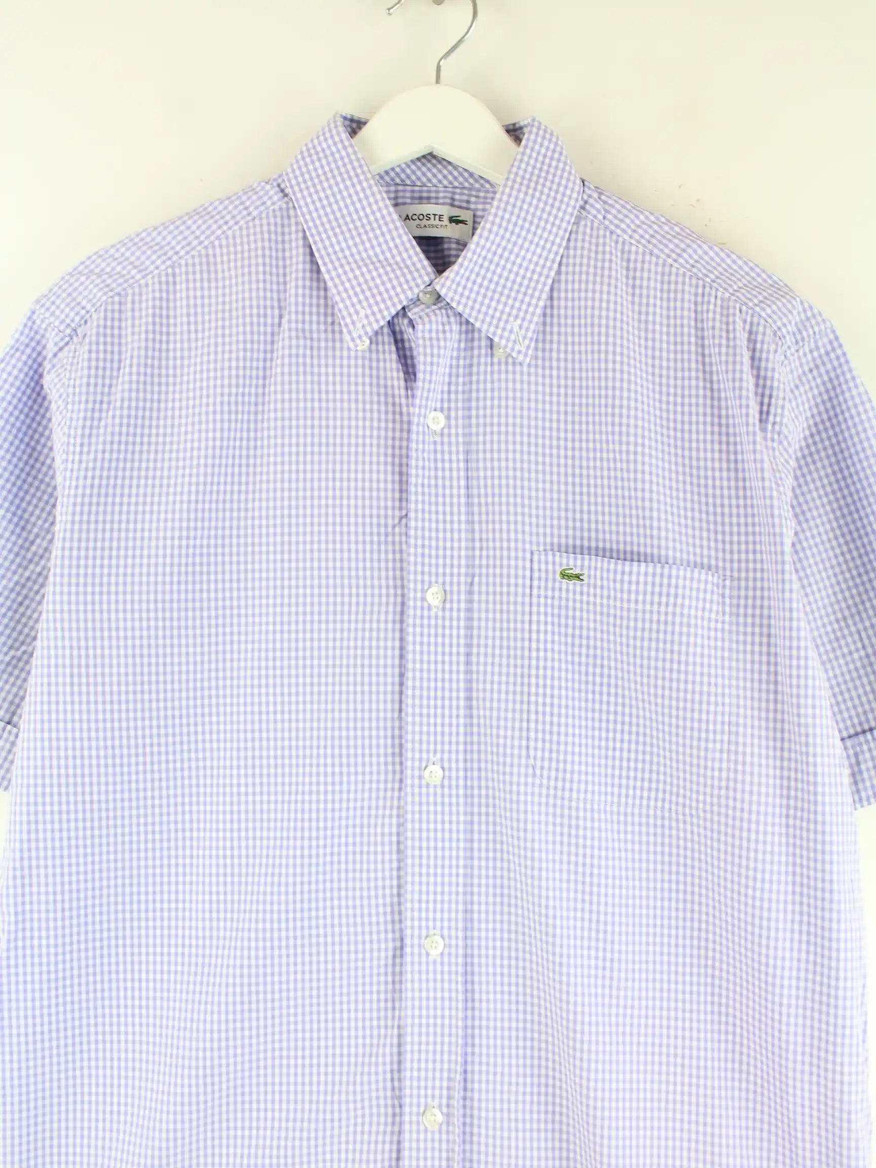 Lilafarbenes Freizeit Hemd vom Brand Lacoste in Größe M. Es ist aus Baumwolle und in gutem Zustand vorrätig.