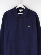 Blaues Poloshirt des Labels Lacoste in Größe XXL. Es ist aus Baumwolle hergestellt und in sehr gutem Zustand bei uns vorrätig.