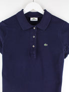 Blaues Poloshirt des Labels Lacoste in Größe XS. Es ist aus Baumwolle gemacht und in gutem Zustand zu bekommen.