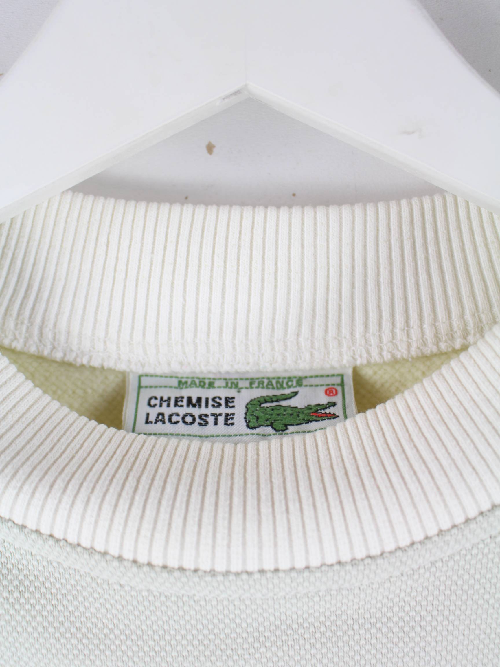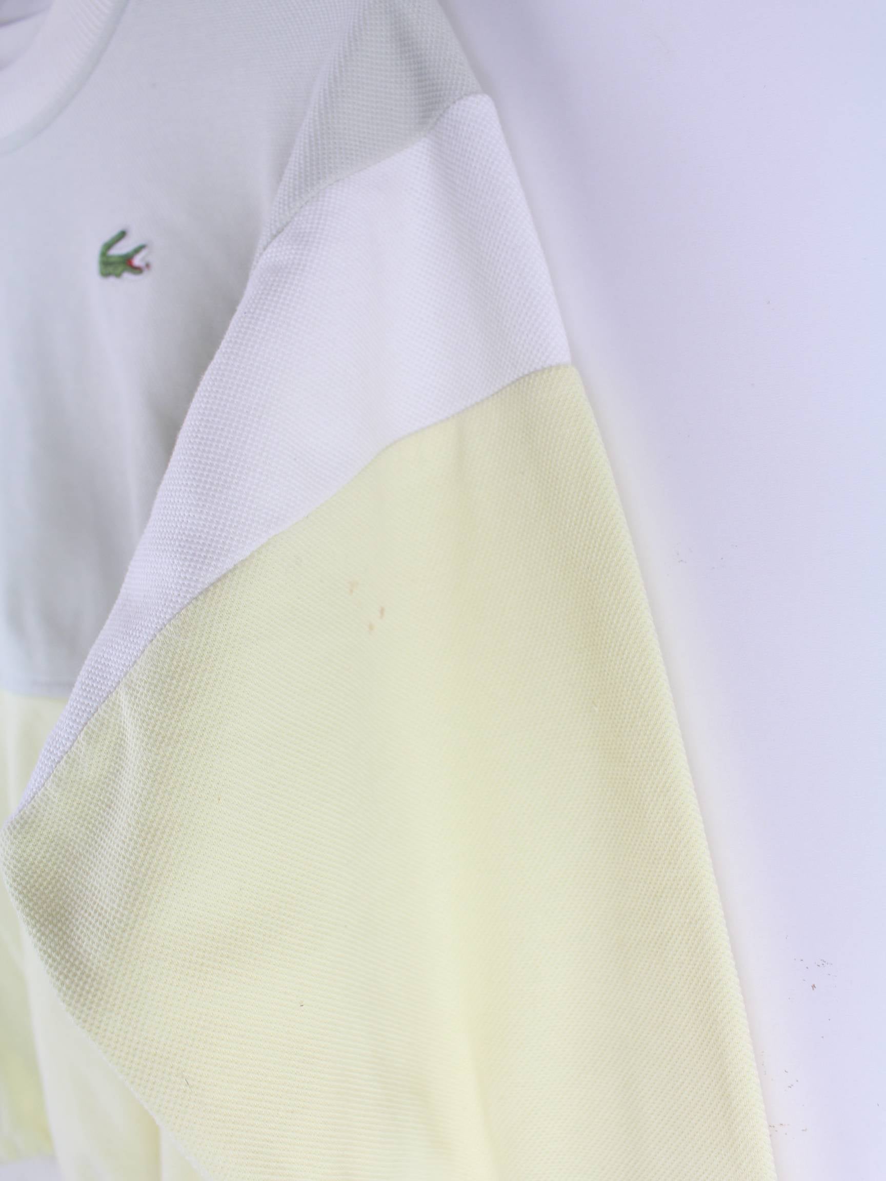 Sweater der Brand Lacoste in Größe XS aus den 90'ern. Er ist aus einer Baumwollmischung produziert und in Gelb bei uns zu bekommen.