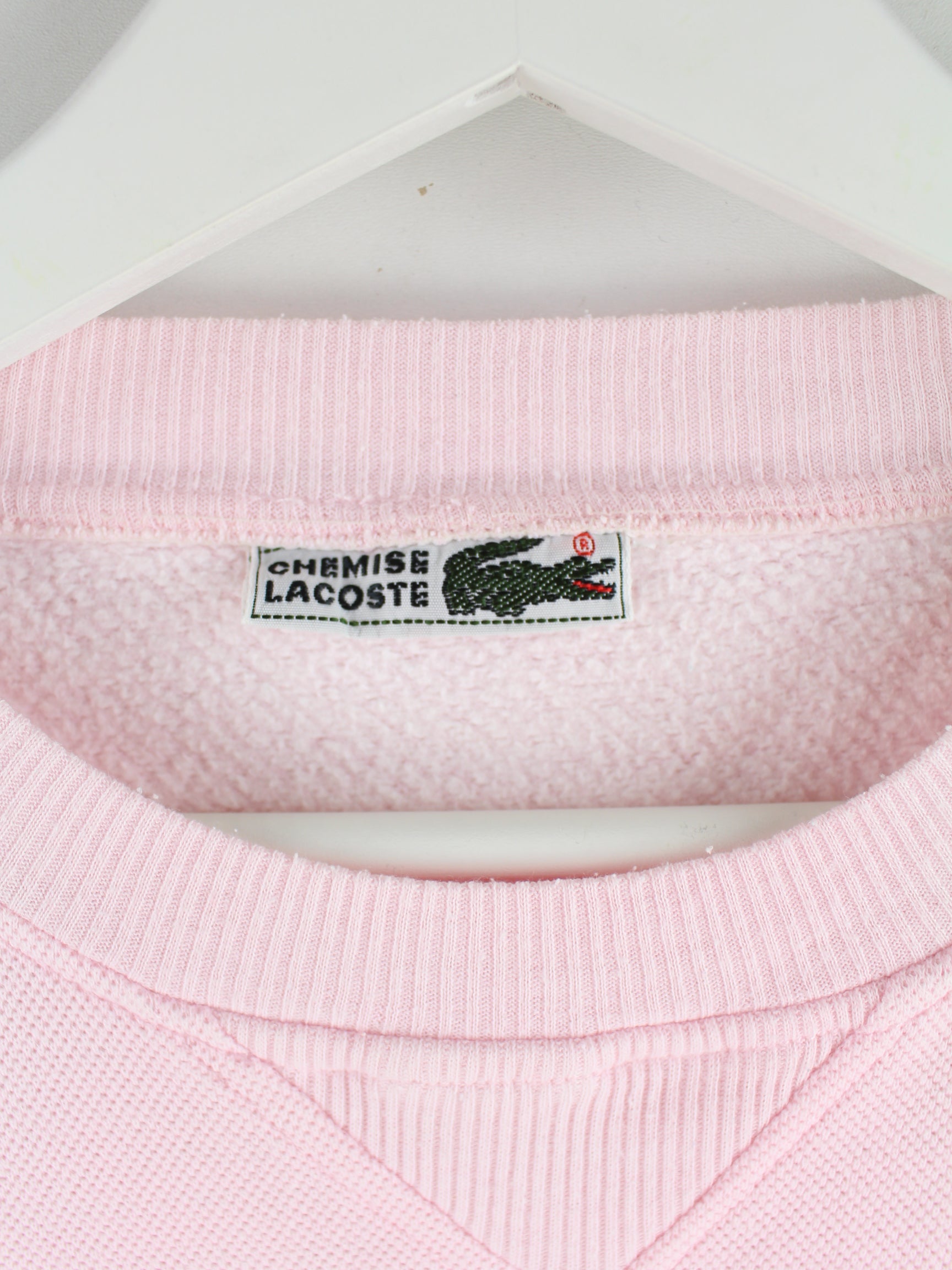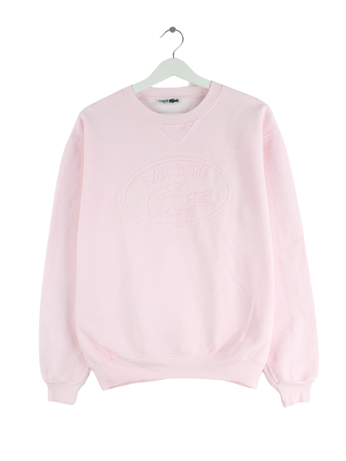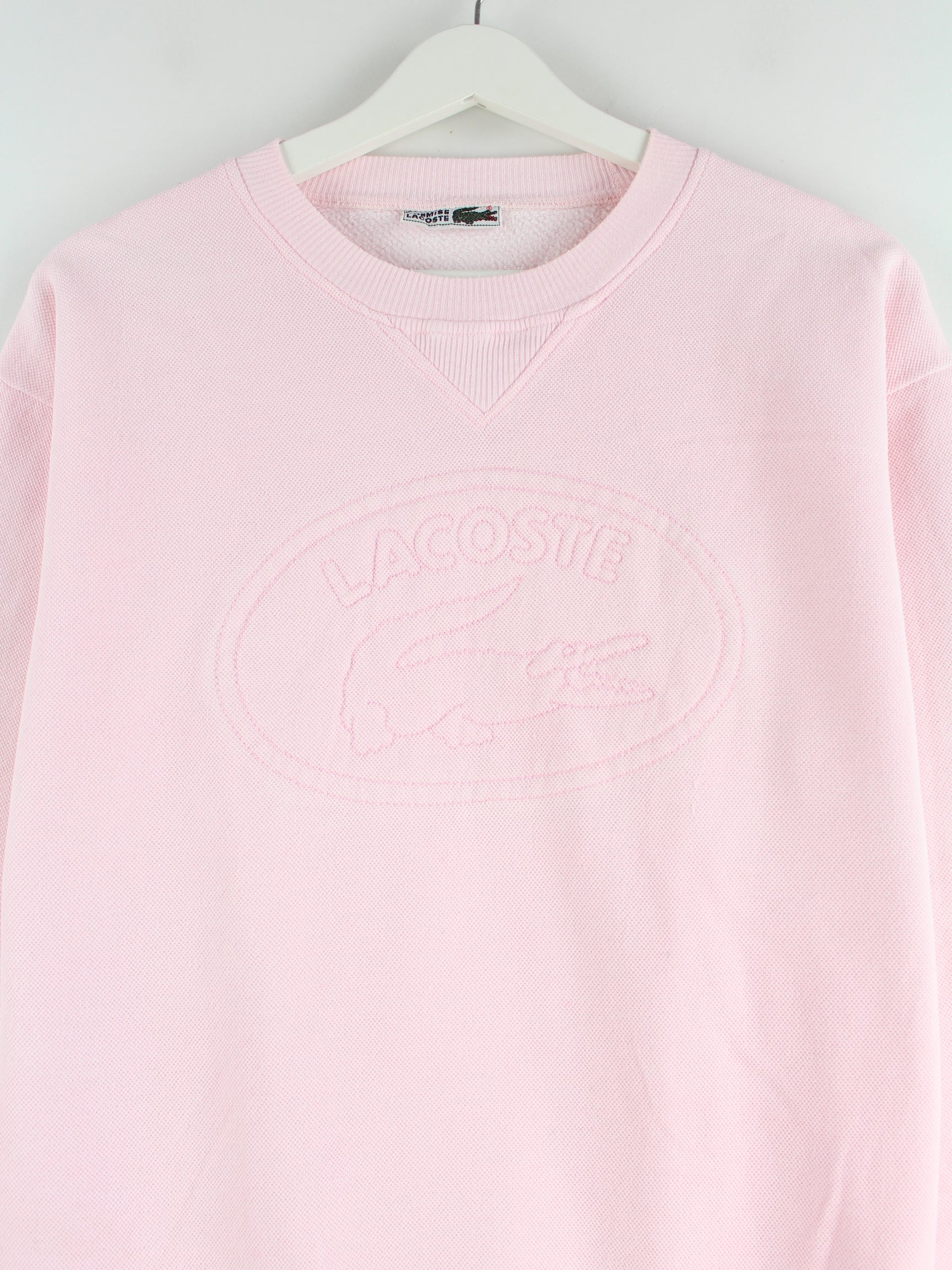 Sweater from the Lacoste brand with embroidery in size M from the 90s. It is made from a cotton blend and is available in pink.