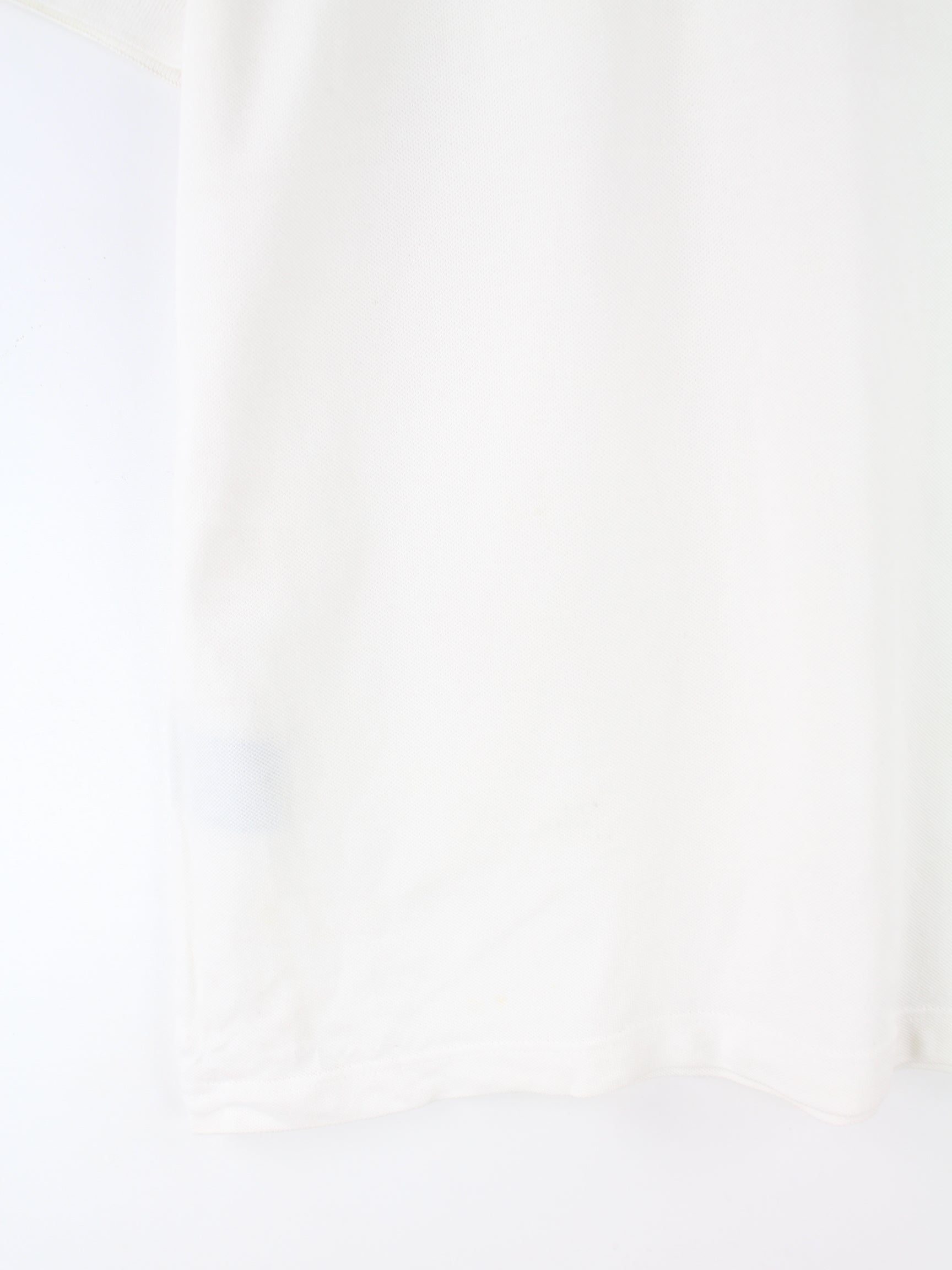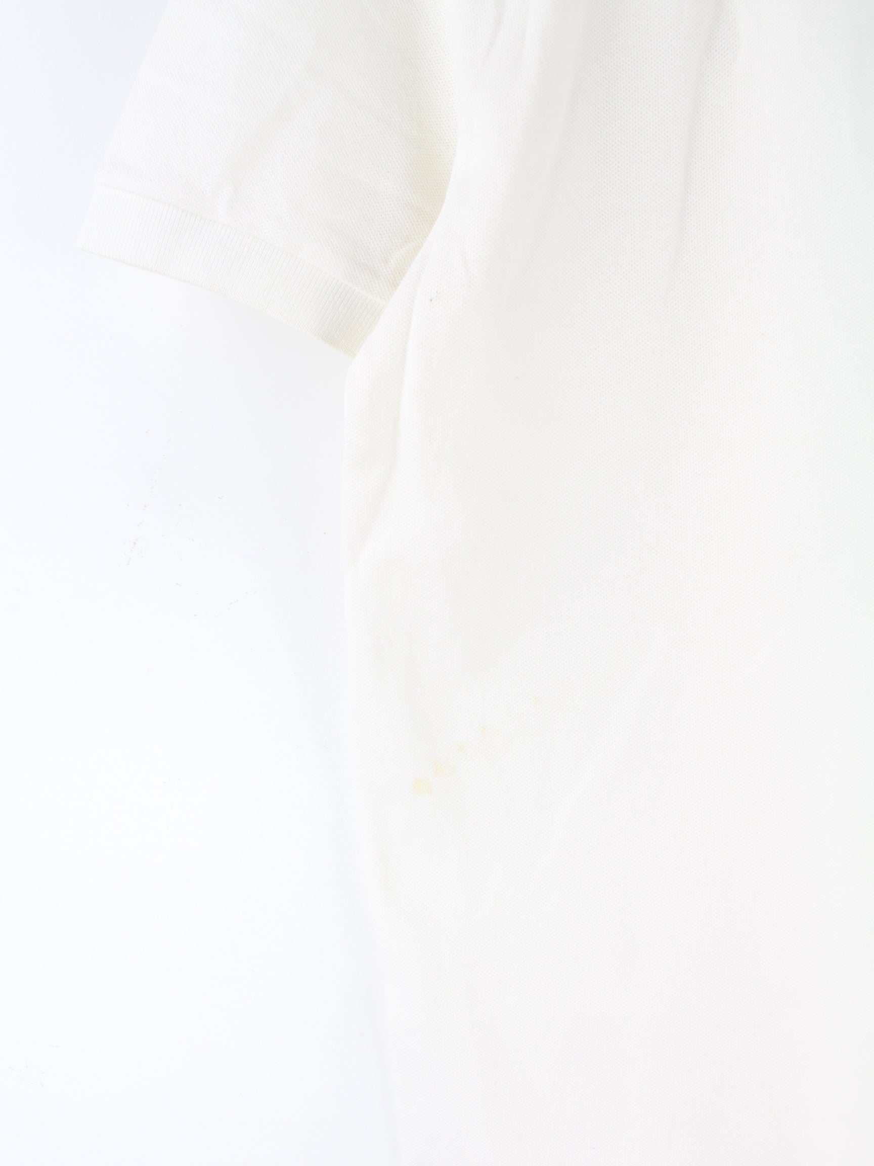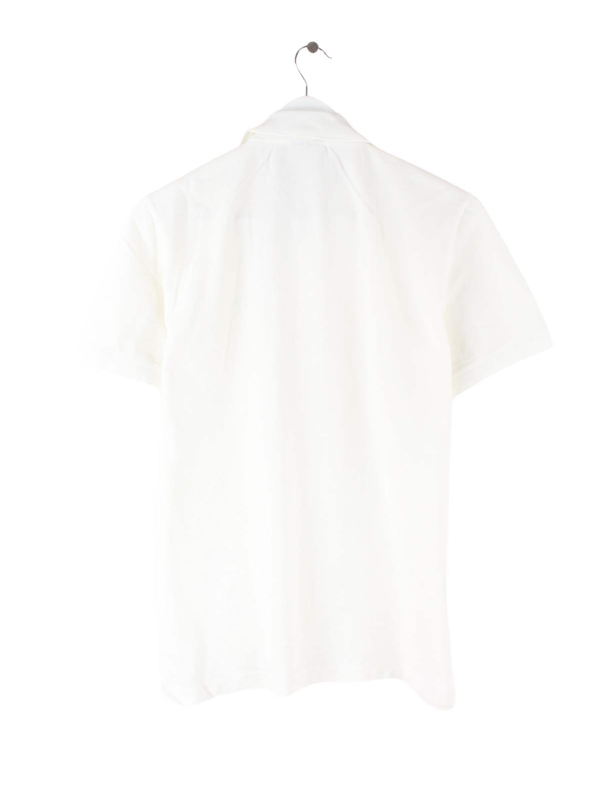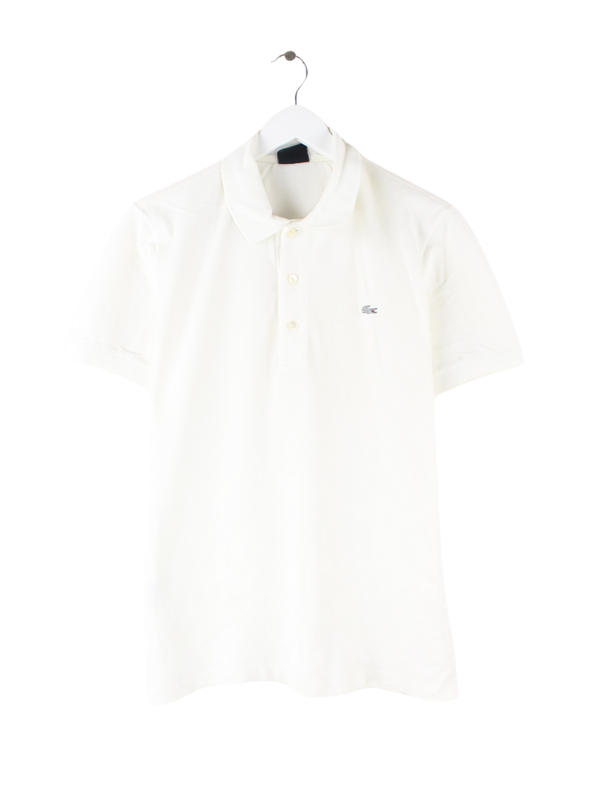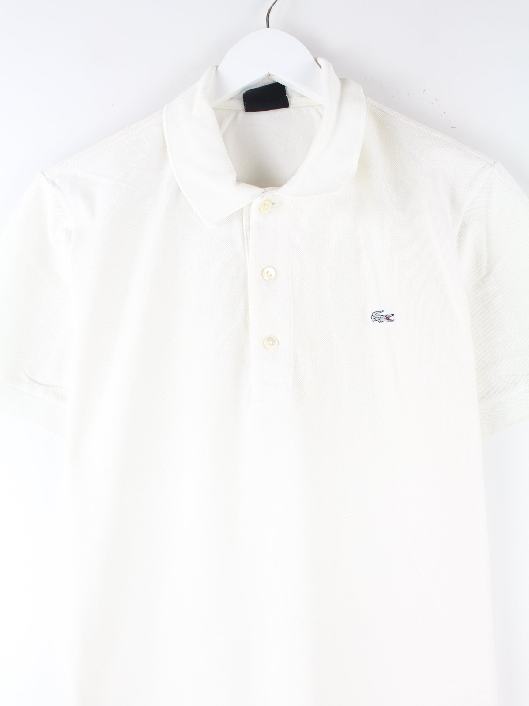 Weißes Poloshirt vom Brand Lacoste in Größe XS. Es ist aus Baumwolle hergestellt und in gutem Zustand auf Lager.
