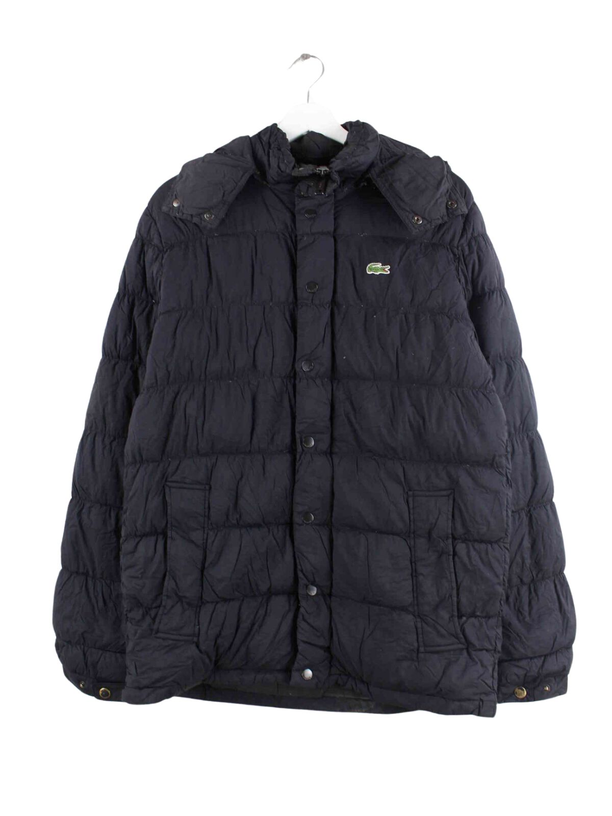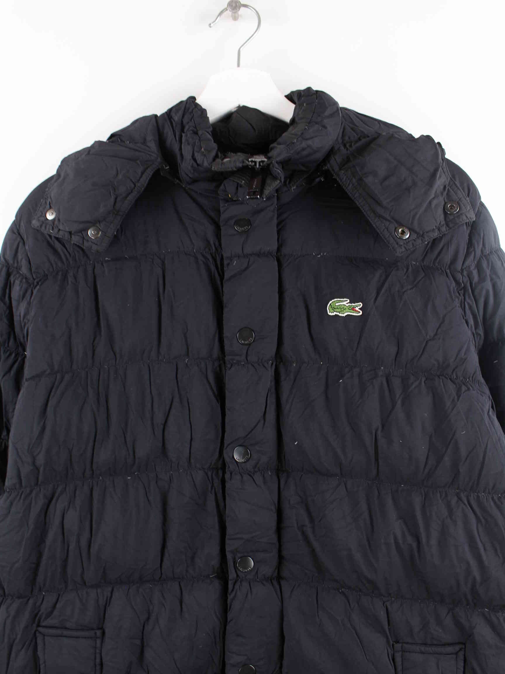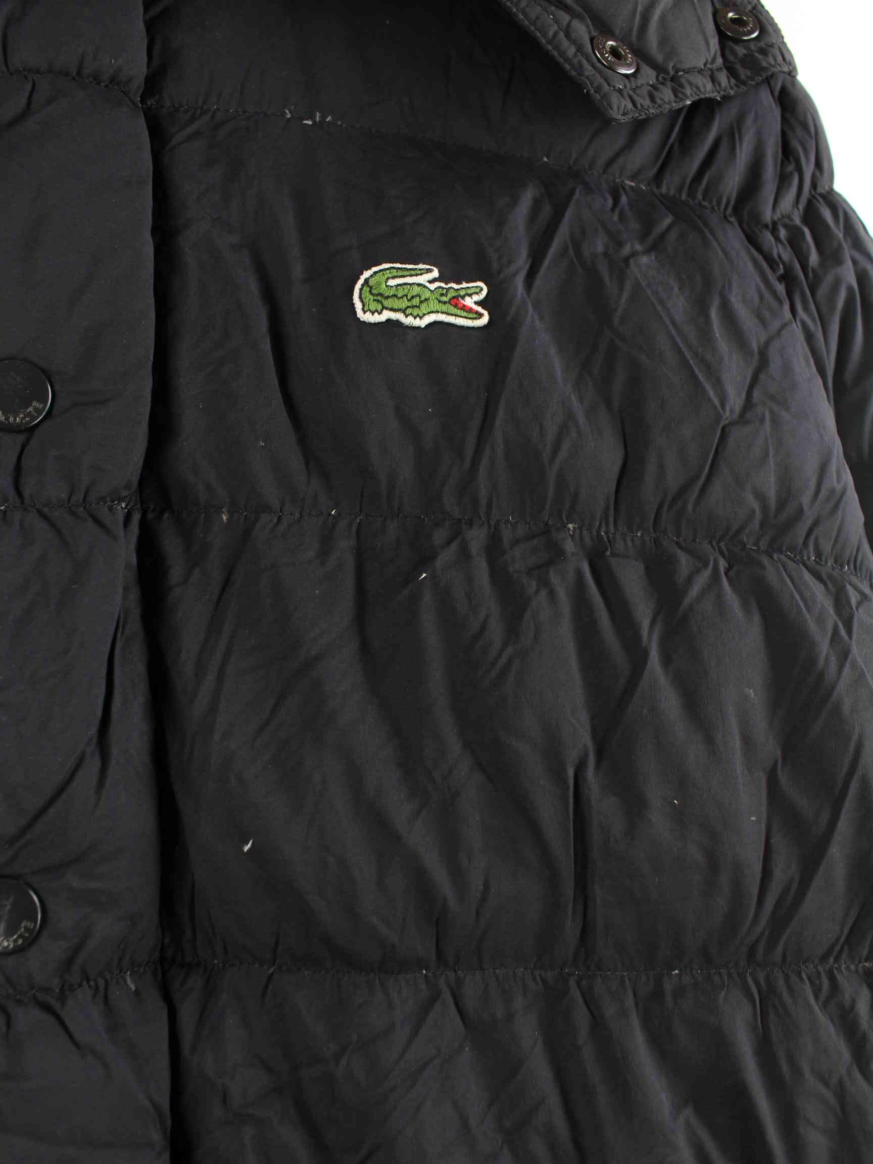 Black jacket from the Lacoste brand in size L. It is made of synthetic material and is available in good condition.