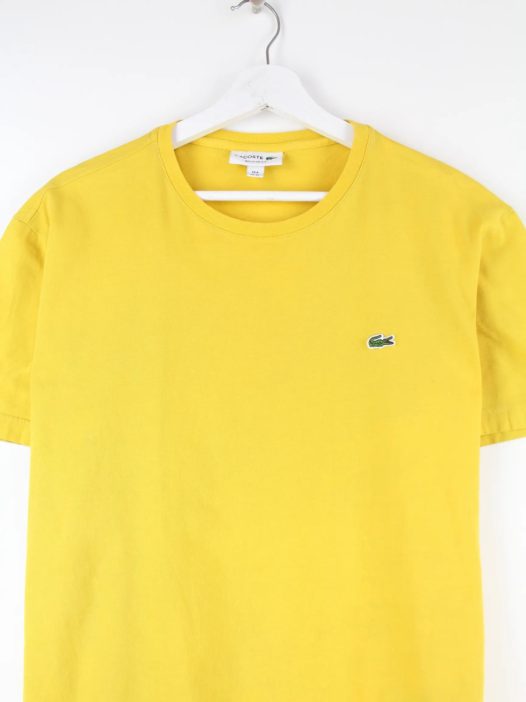 Gelbes T-Shirt von Lacoste in Größe XL. Es ist aus Baumwolle hergestellt und in sehr gutem Zustand vorrätig.