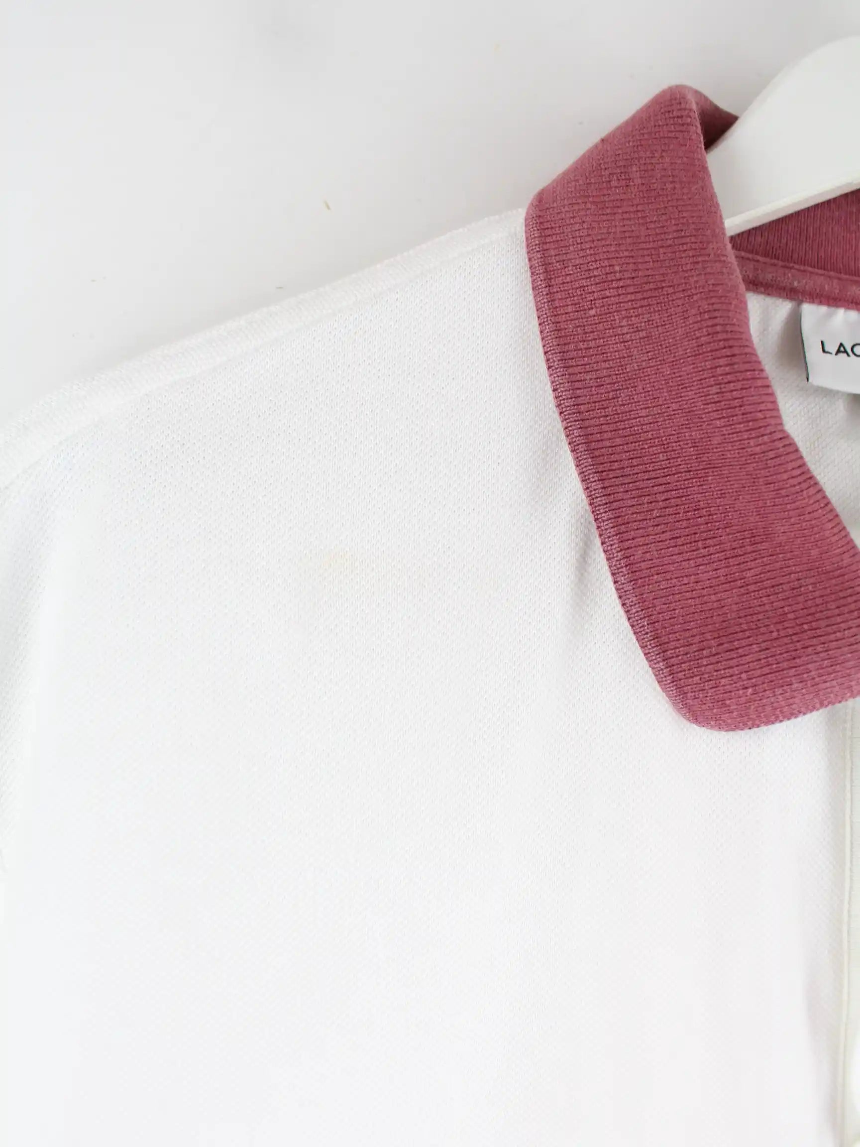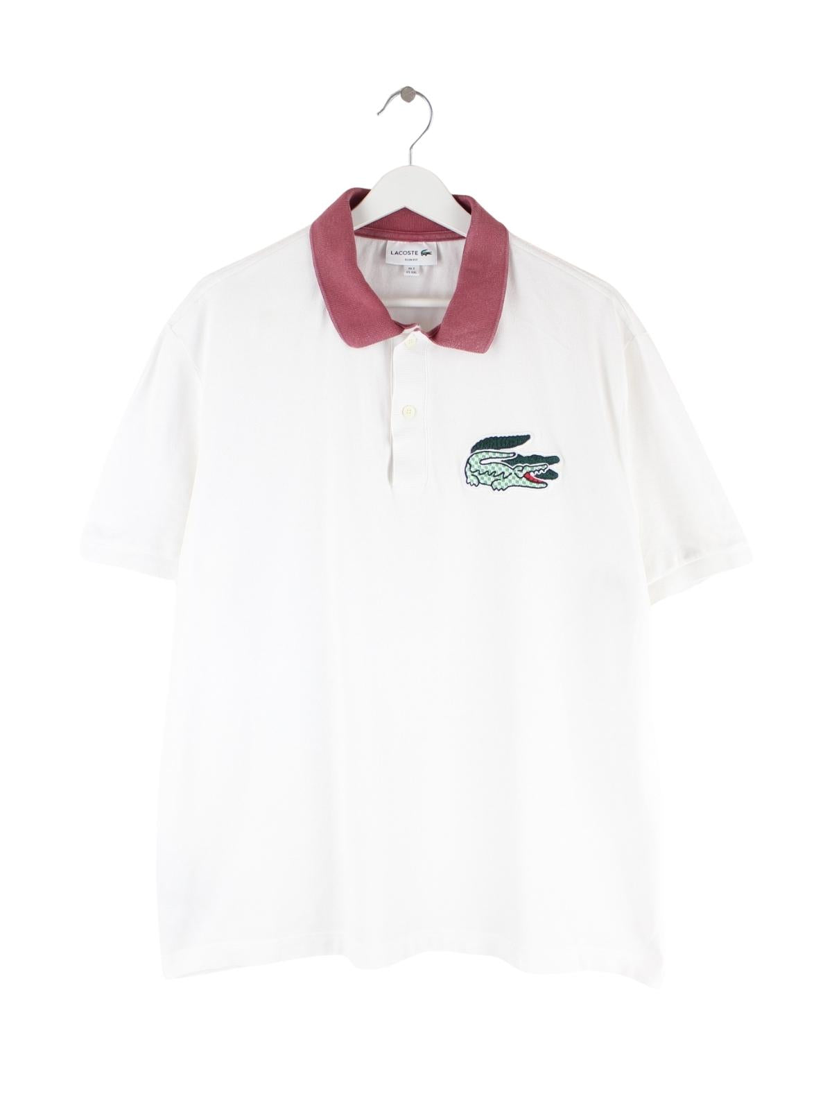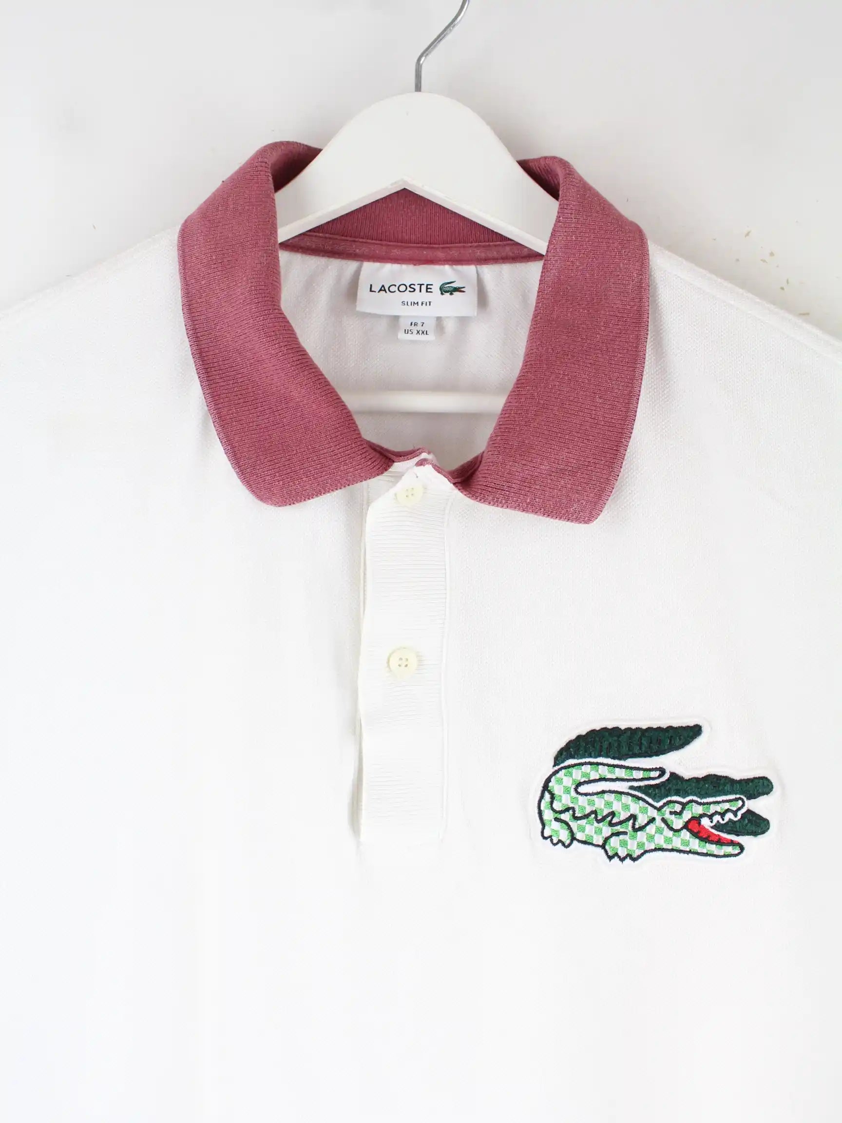 Weißes Poloshirt der Marke Lacoste in Größe XXL. Es ist aus Baumwolle angefertigt und in gutem Zustand in Stock.