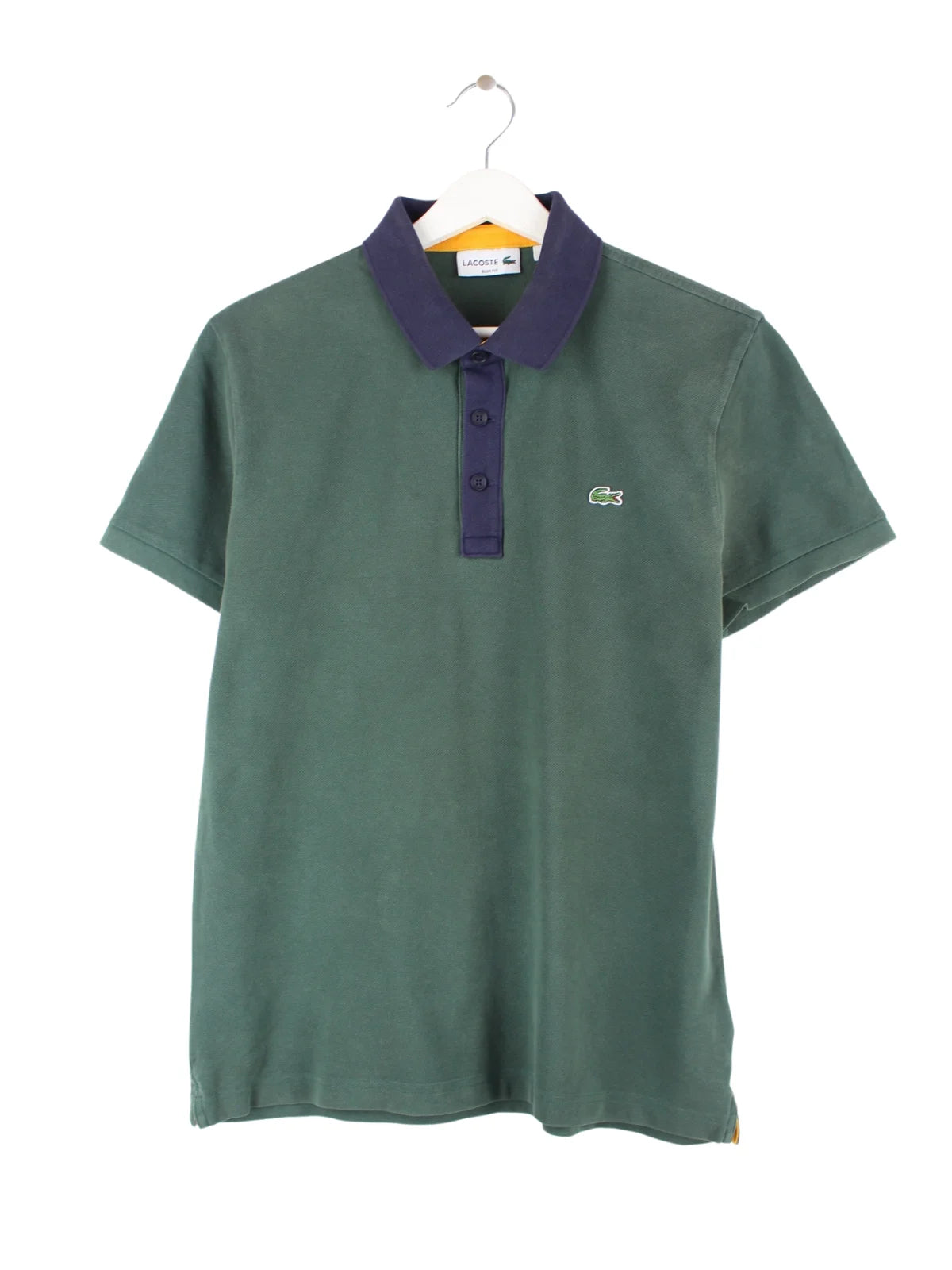 Grünes Poloshirt der Brand Lacoste in Größe M. Es ist aus Baumwolle und in sehr gutem Zustand in Stock.