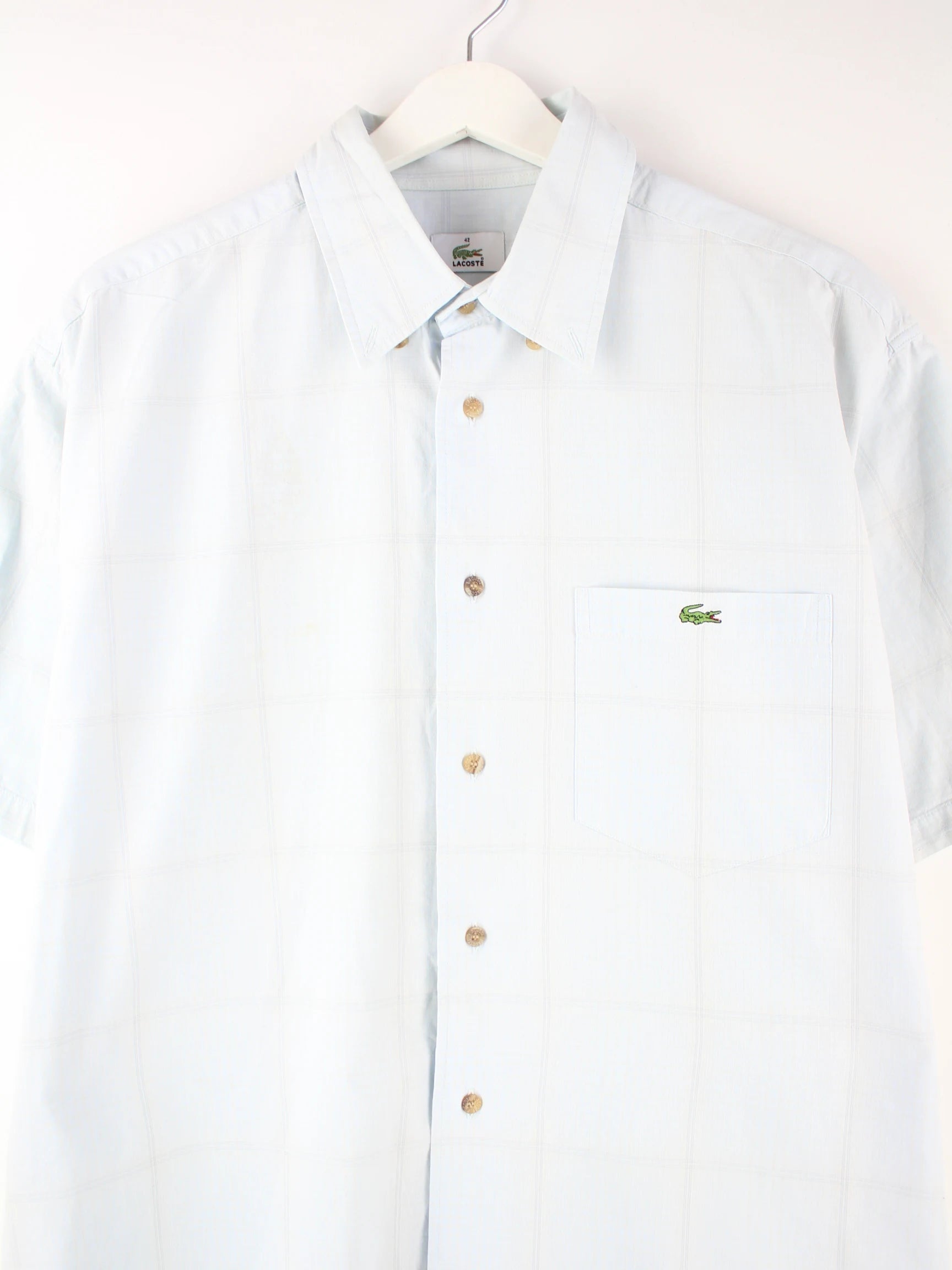 Blaues Freizeit Hemd vom Label Lacoste in Größe XL. Es ist aus Baumwolle hergestellt und in gutem Zustand vorrätig.