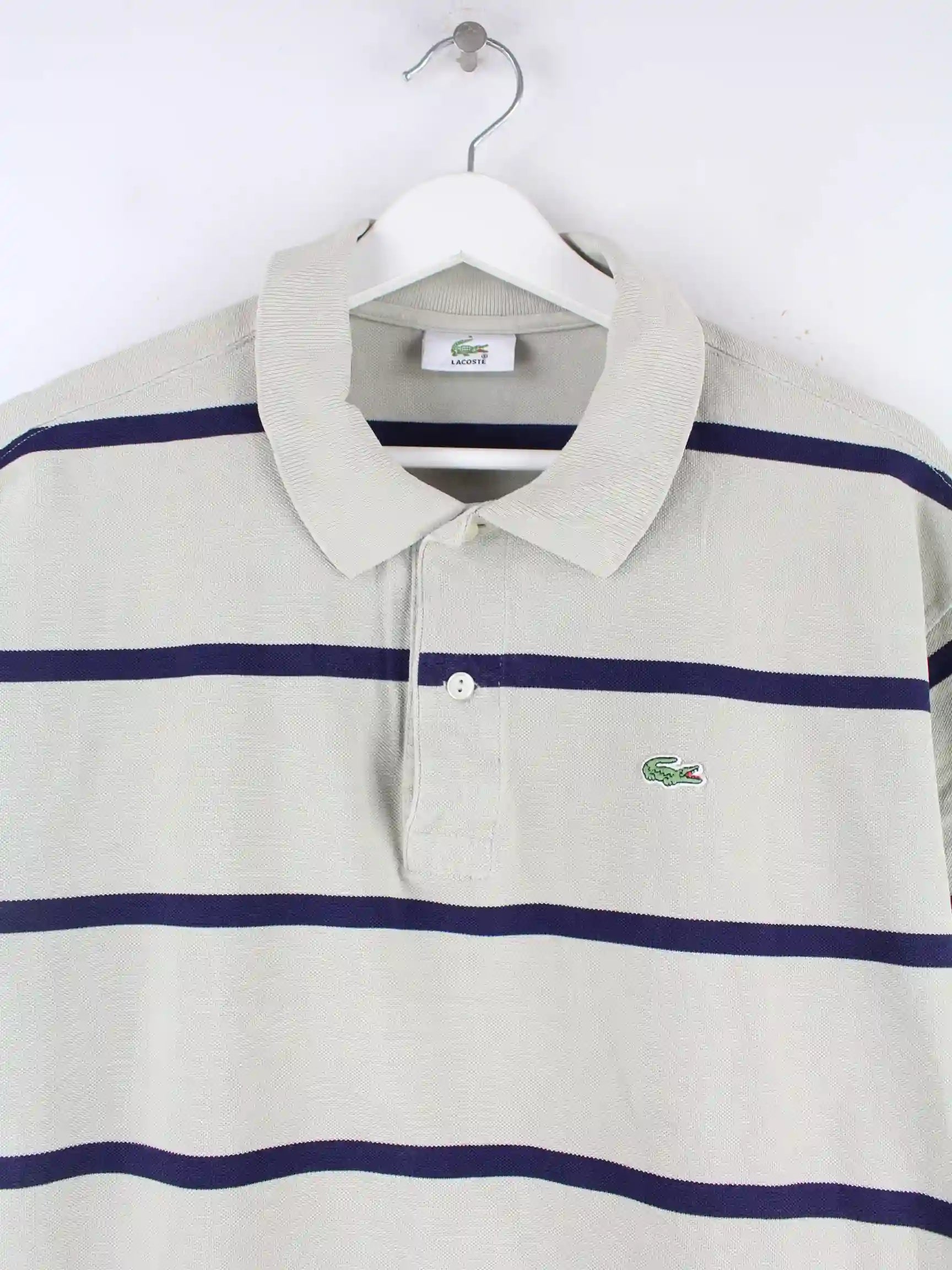 Poloshirt des Labels Lacoste in Größe XL. Es ist aus Baumwolle und in Grau vorrätig.