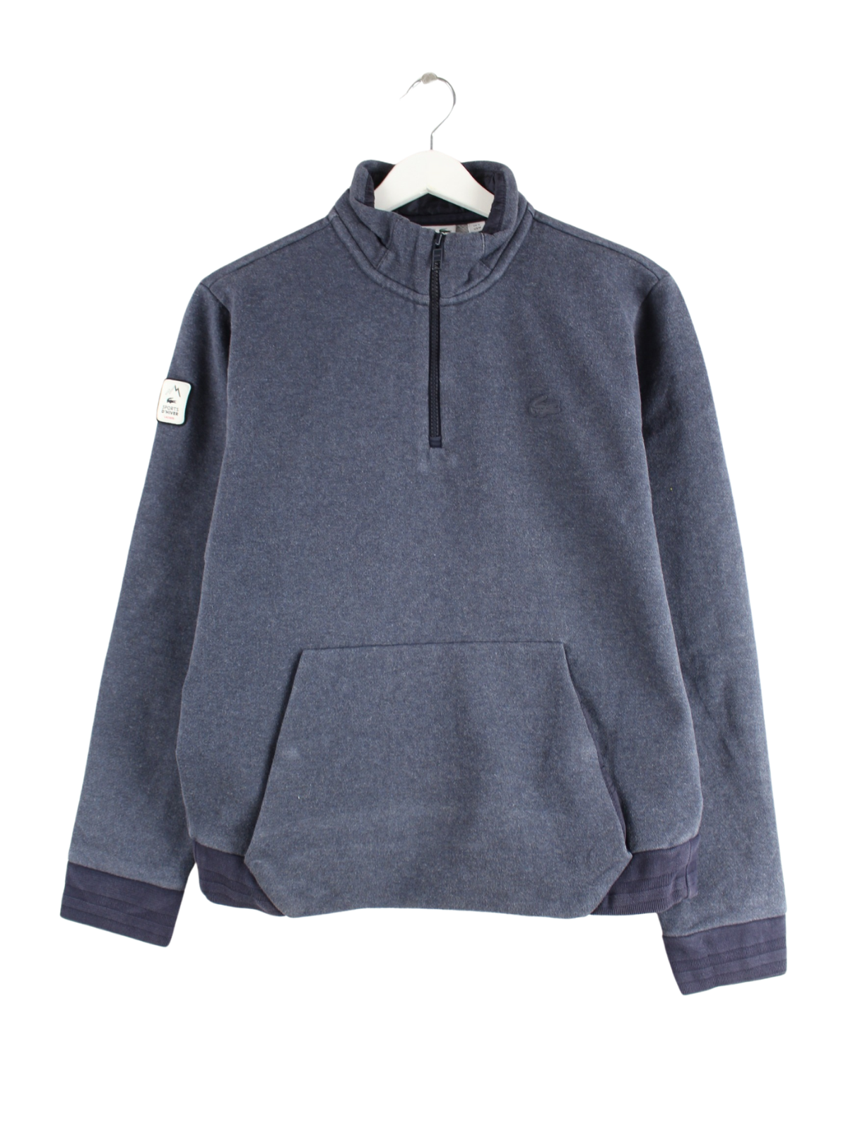 Half-zip sweater from the Lacoste label in size S from the early 2000s. It is made from a cotton blend and is available in grey.