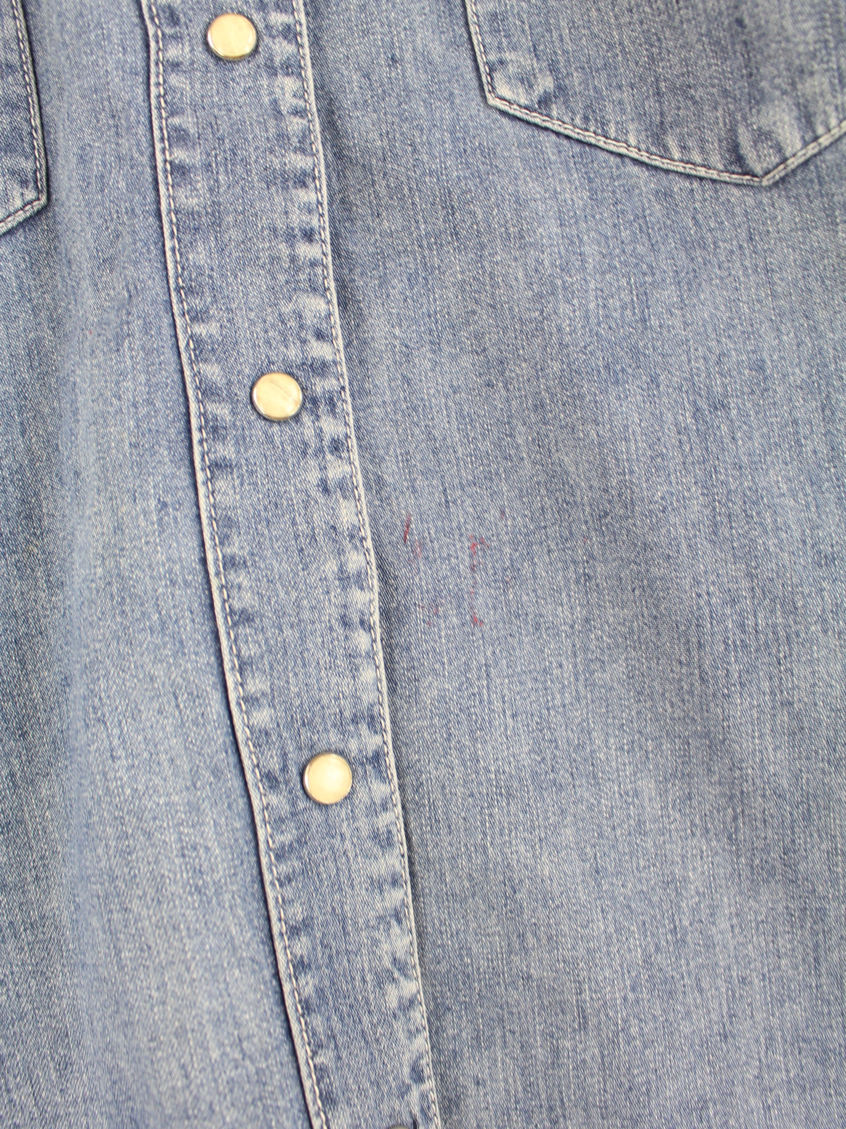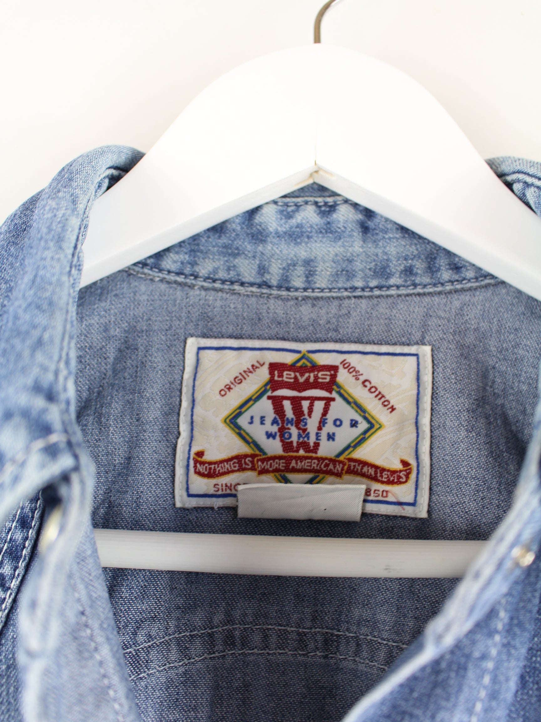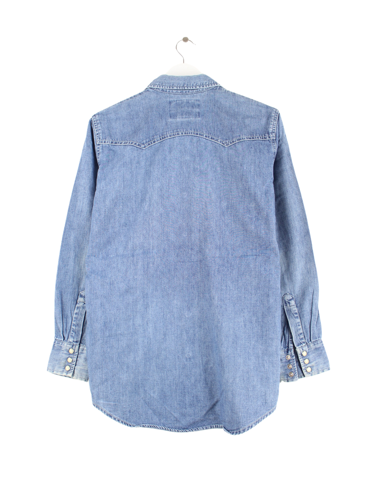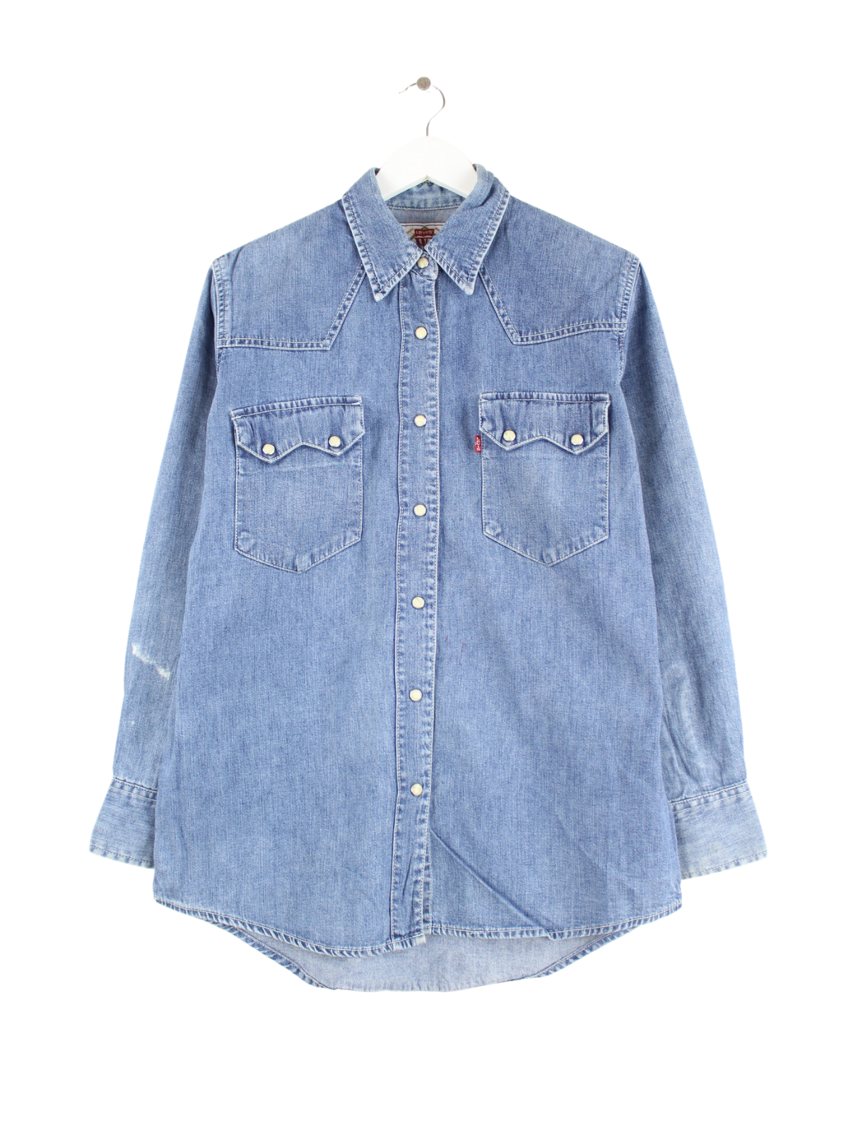 Leisure shirt from Levi's in size M from the 90's. It is made from a cotton blend and is available from us in blue.