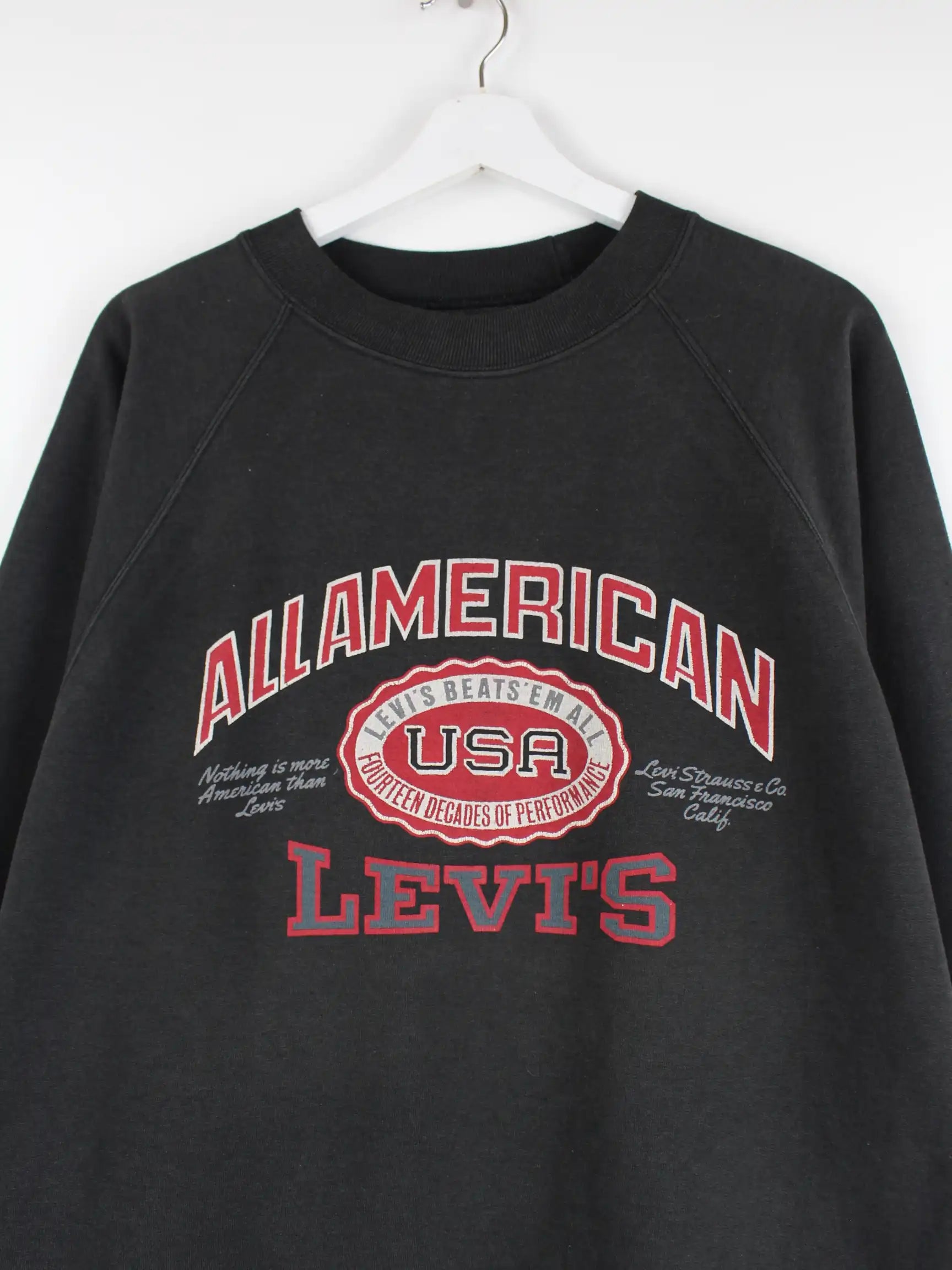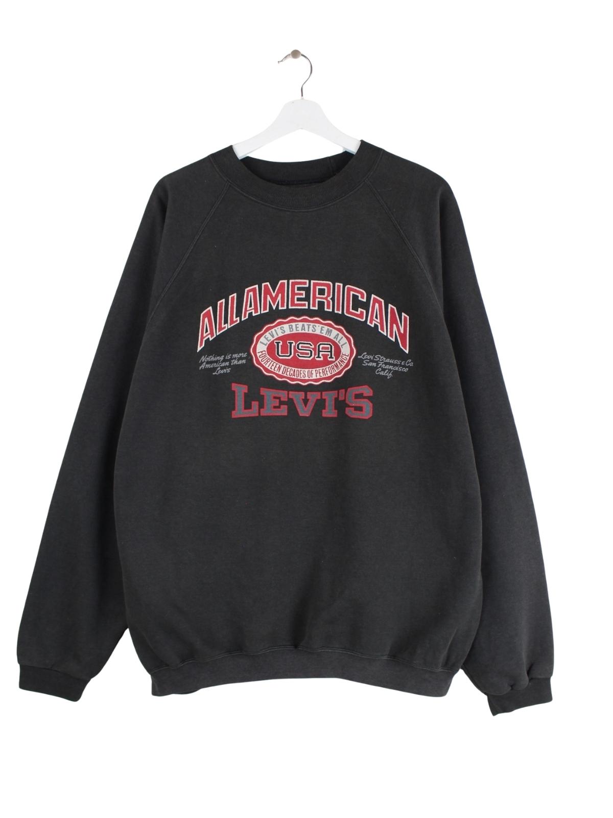 Sweater der Marke Levi's in Größe XL aus den 90'ern. Er ist aus einer Baumwollmischung hergestellt und in Schwarz auf Lager. Mit chiquem Vintage Print.