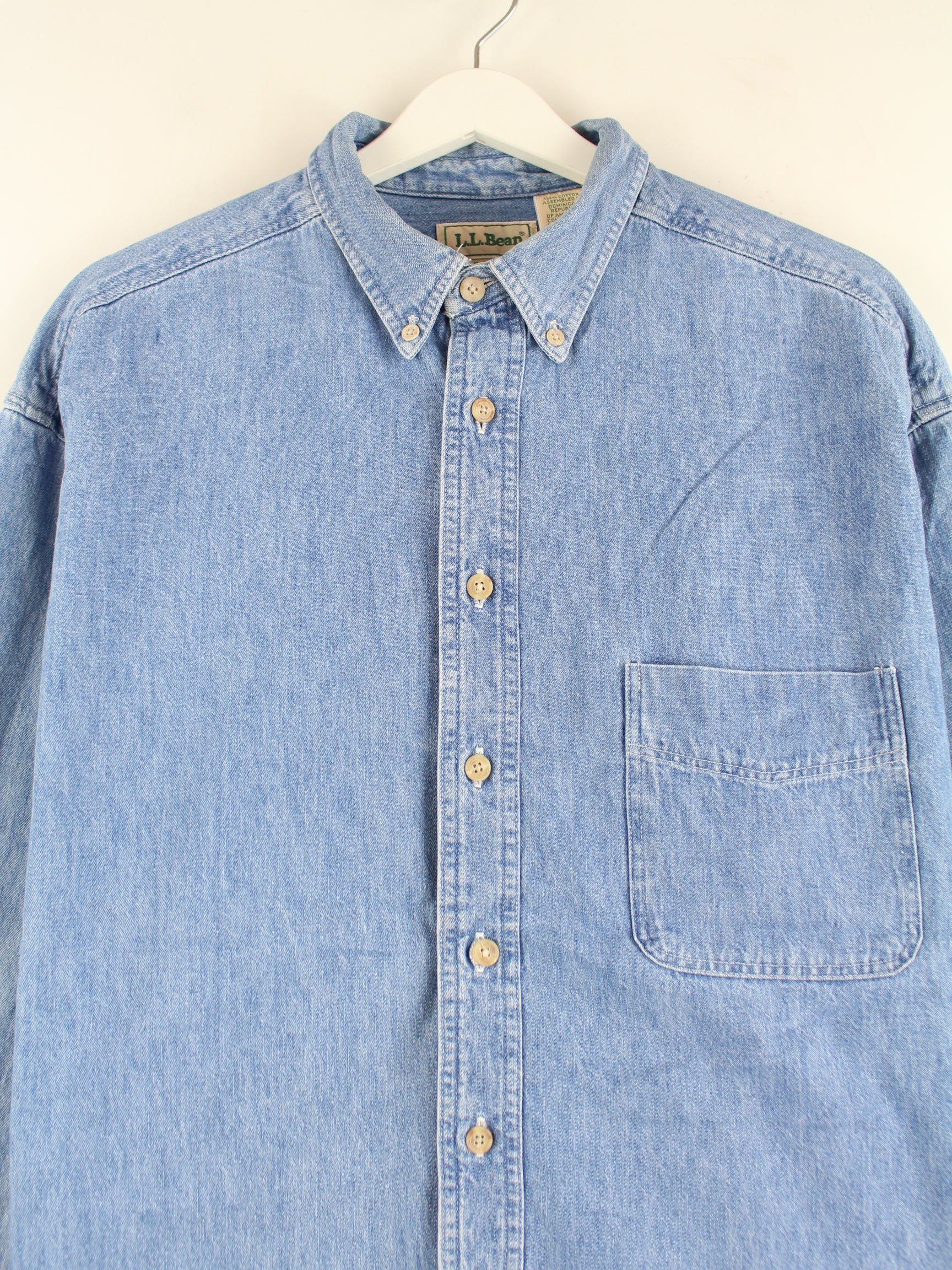 LL Bean 90s Vintage Jeans Shirt Blue L
