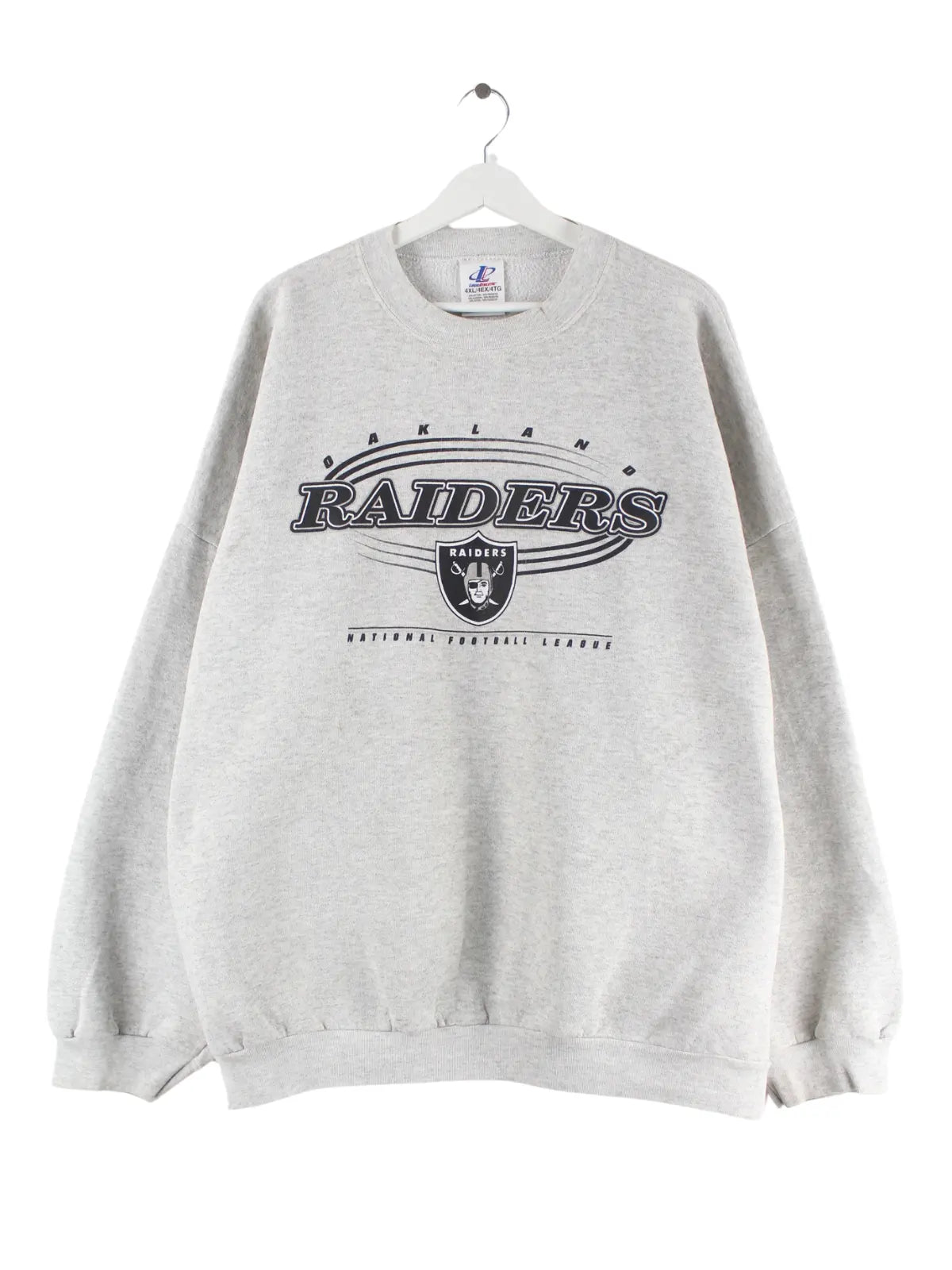 Grauer Sweater von Logo Athletic in Größe 4XL. Er ist aus einer Baumwollmischung hergestellt und in gutem Zustand vorrätig. Mit schönem Raiders Print.