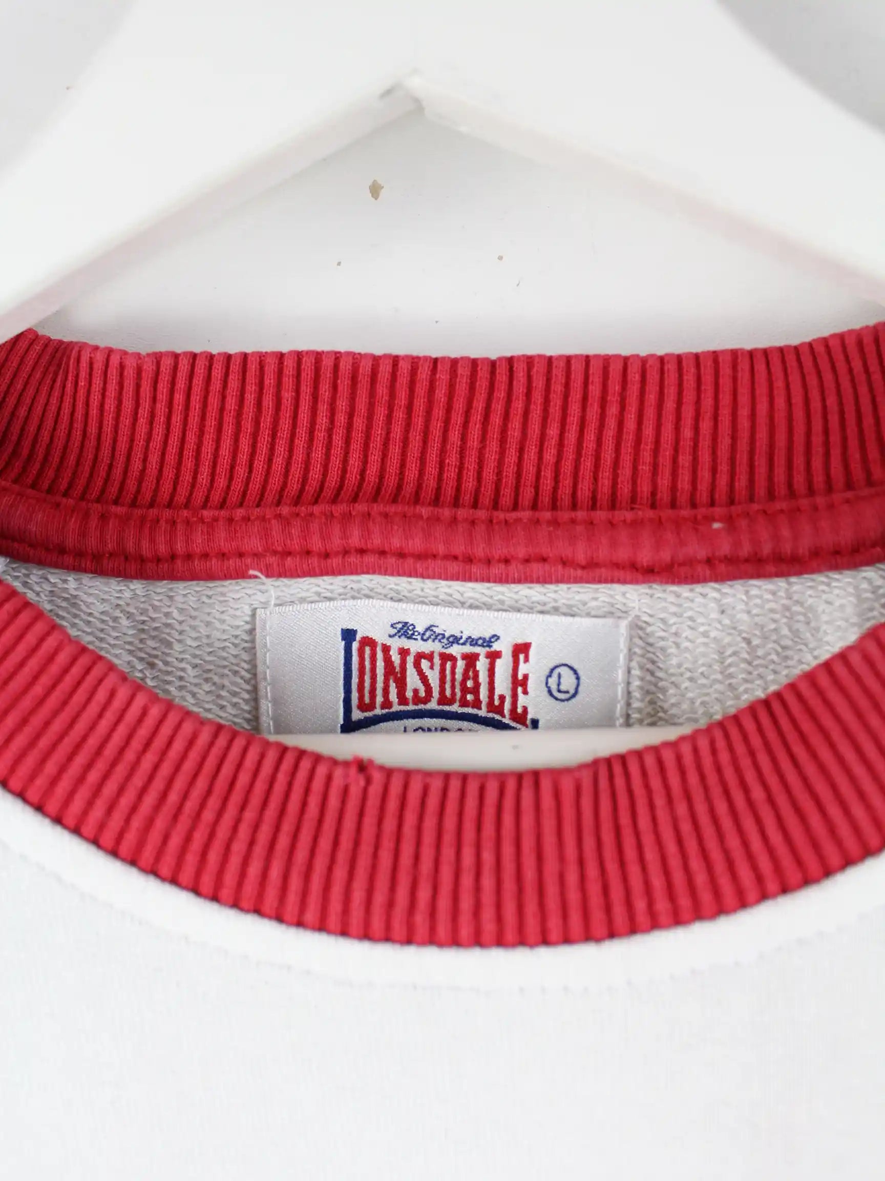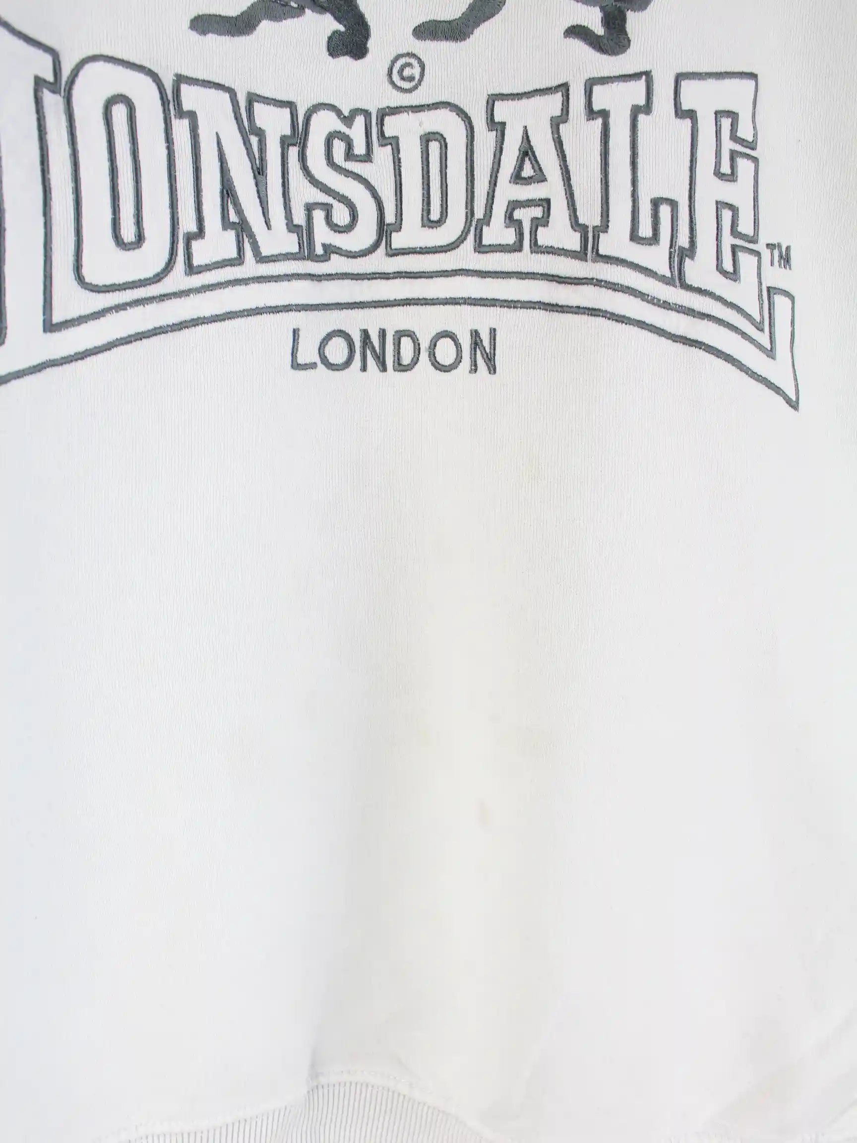 Sweater der Brand Lonsdale mit gesticktem Logo in Größe L. Er ist aus einer Baumwollmischung gemacht und in Weiß lieferbar.