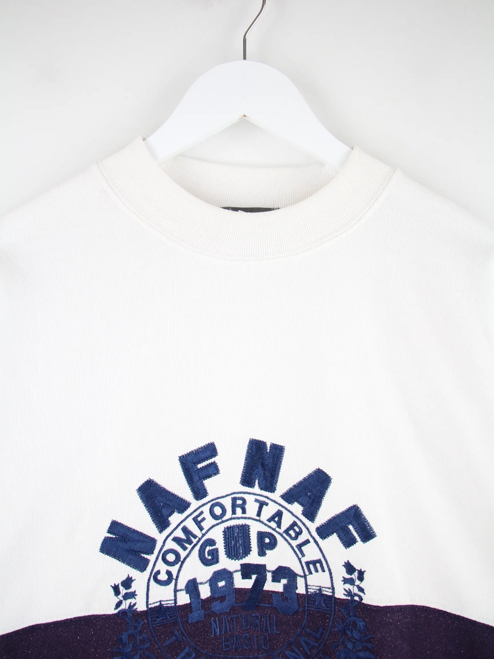 Sweater des Labels Naf Naf in Größe L. Er ist aus einer Baumwollmischung hergestellt und in Weiß auf Lager.
