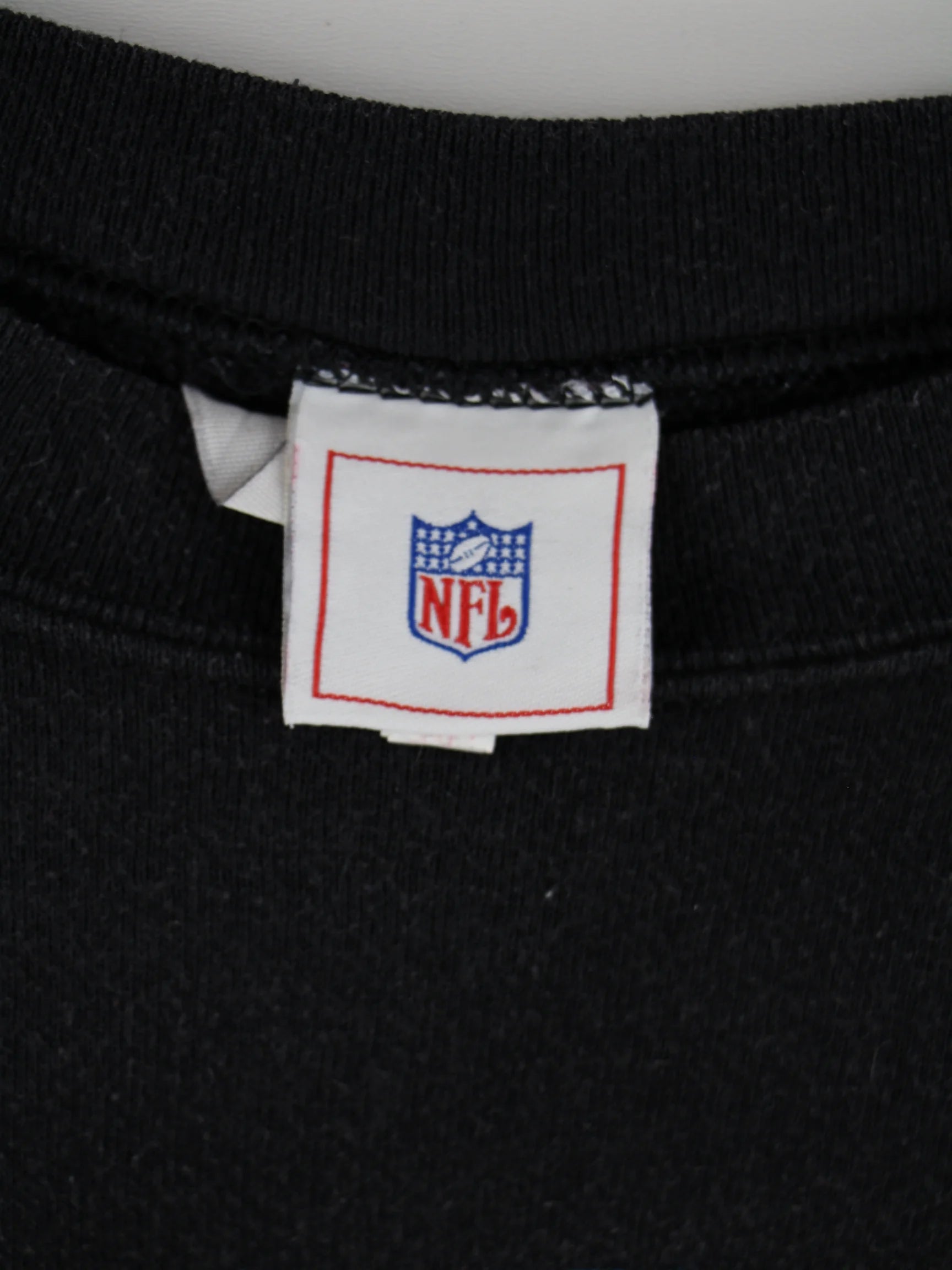 Schwarzer Sweater von NFL in Größe XL. Er ist aus einer Baumwollmischung gefertigt. Den Zustand würden wir als 'In Ordnung' bezeichnen (vergl. Bilder).