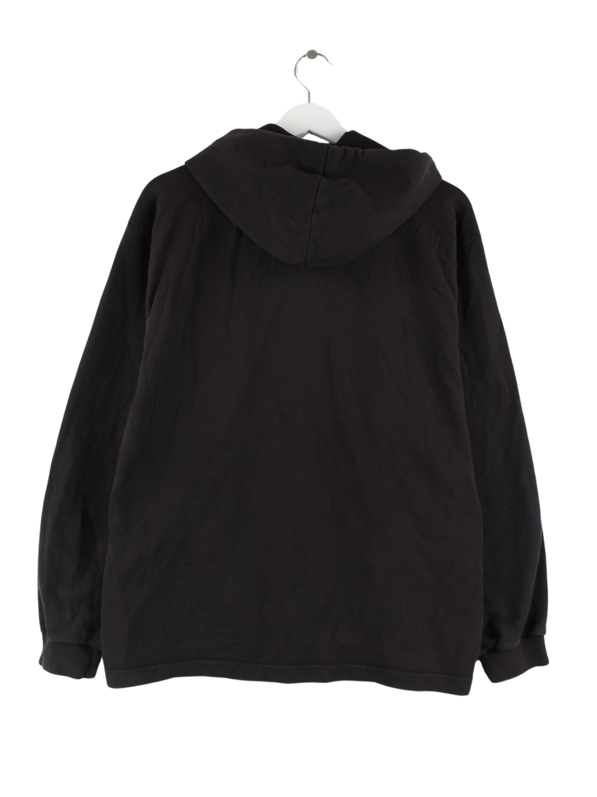 Schwarzer Hoodie mit Reißverschluß aus dem Hause Nike aus den 90'ern in Größe M. Er ist aus einer Baumwollmischung angefertigt und in gutem Zustand zu bekommen.