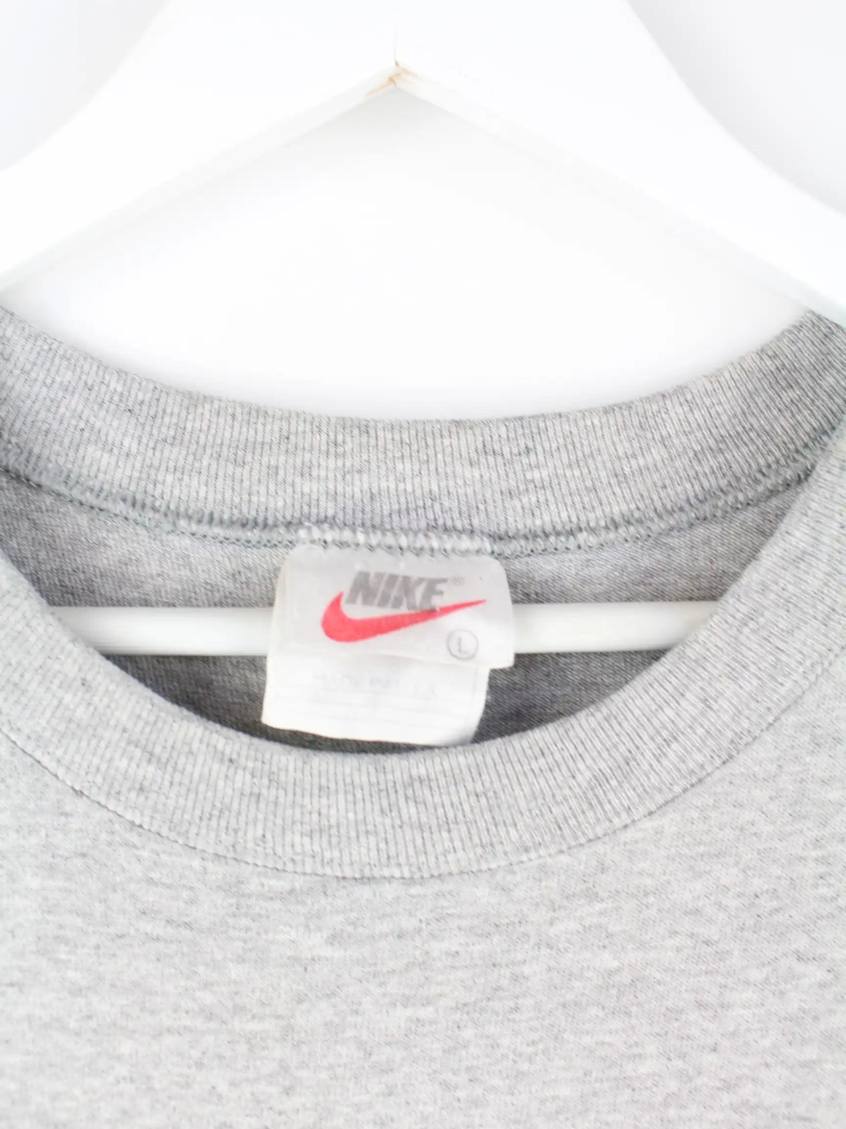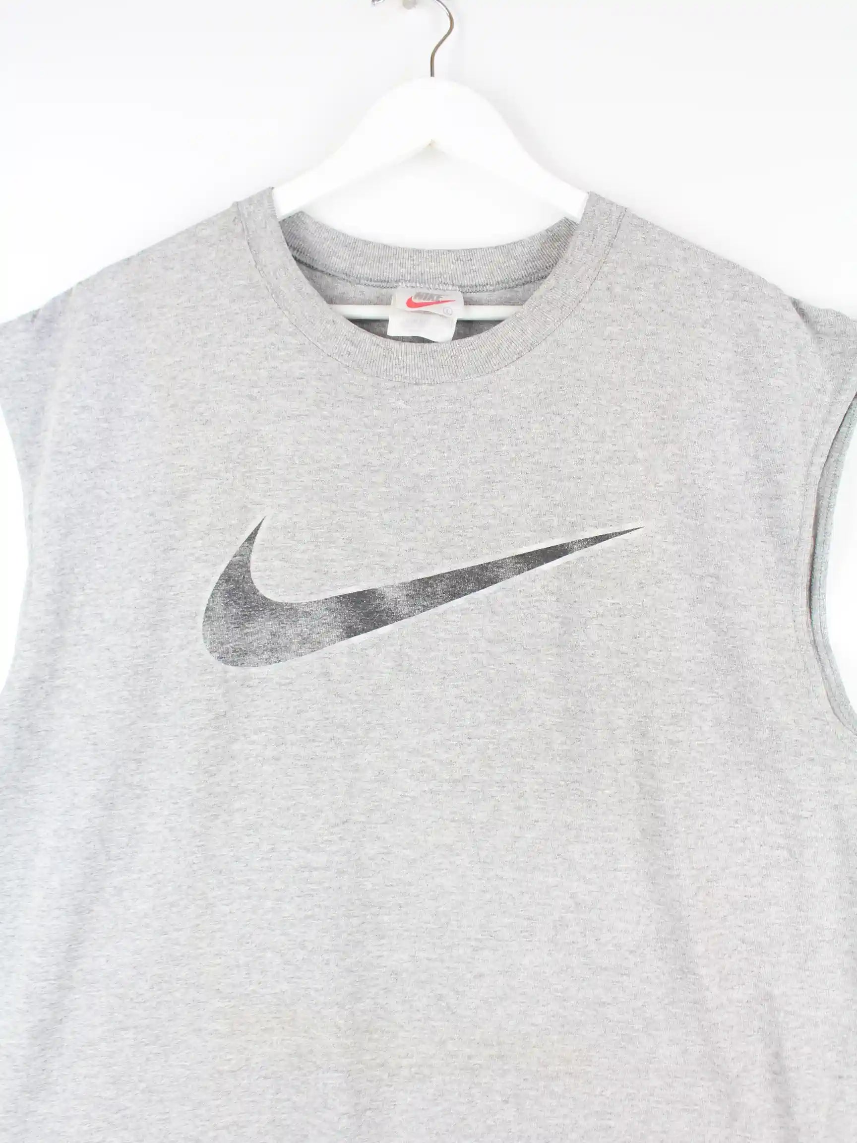 Tank Top vom Brand Nike in Größe L aus den 90'ern. Er ist aus Baumwolle produziert und in Grau in Stock. Mit tollem Swoosh Print.