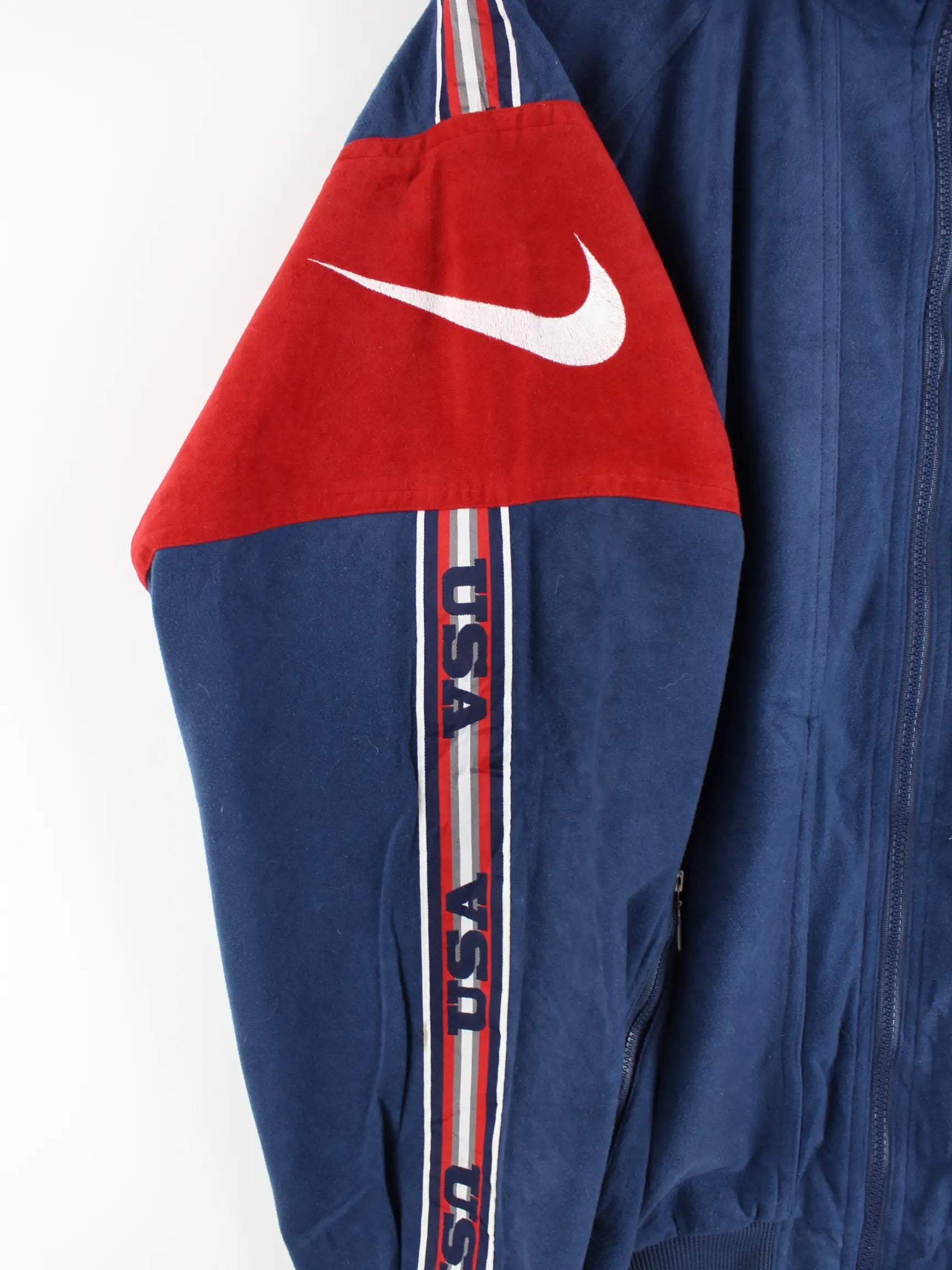 Trainingsjacke von Nike in Größe M aus den 90'ern. Sie ist aus Synthetik gefertigt und in Blau auf Lager.
