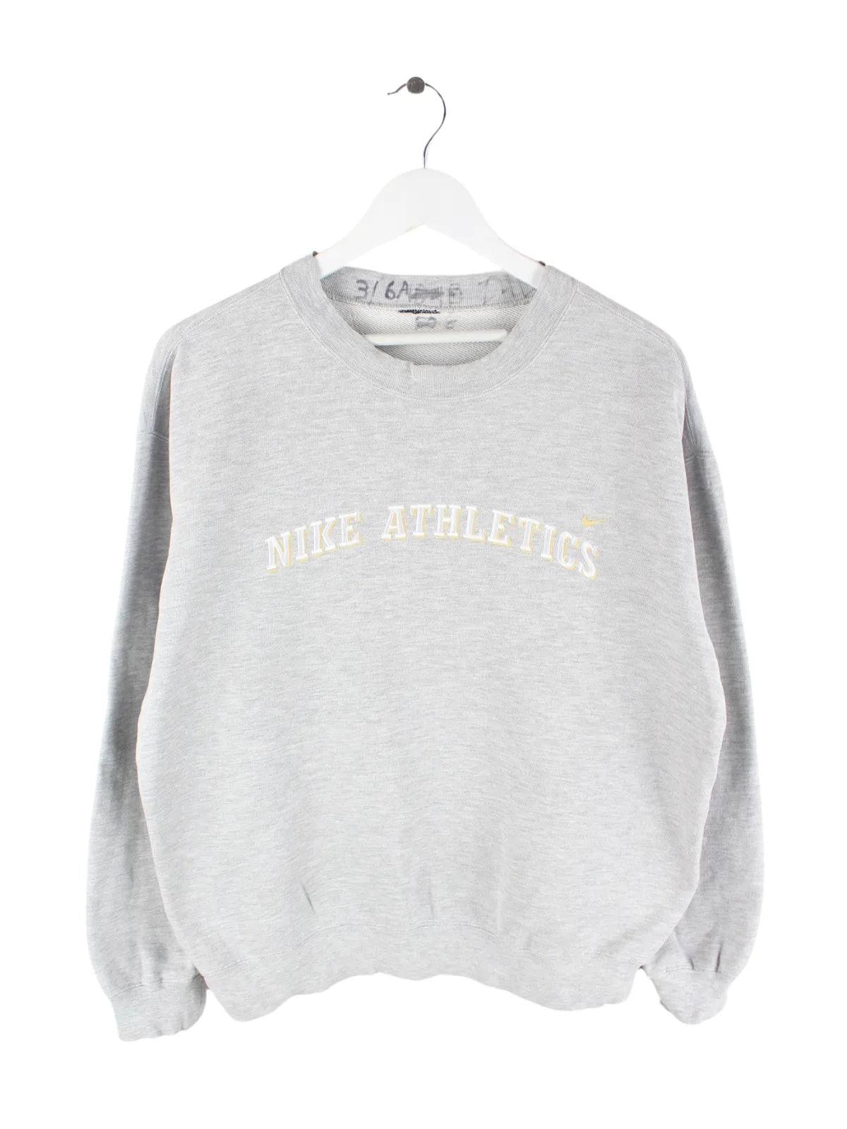 Sweater der Brand Nike mit Stick in Größe M aus den 90'ern. Er ist aus einer Baumwollmischung gefertigt und in Grau bei uns zu bekommen.