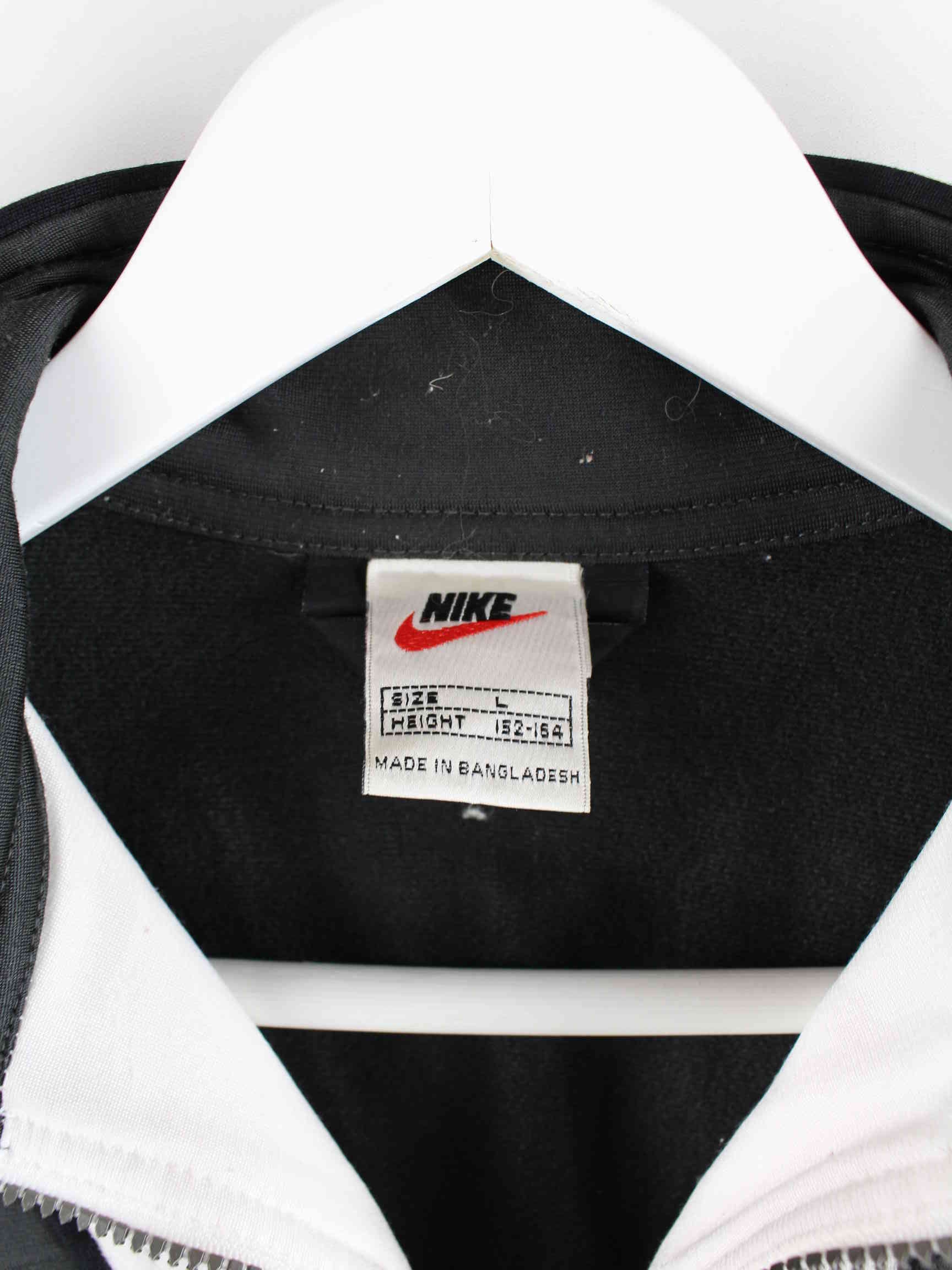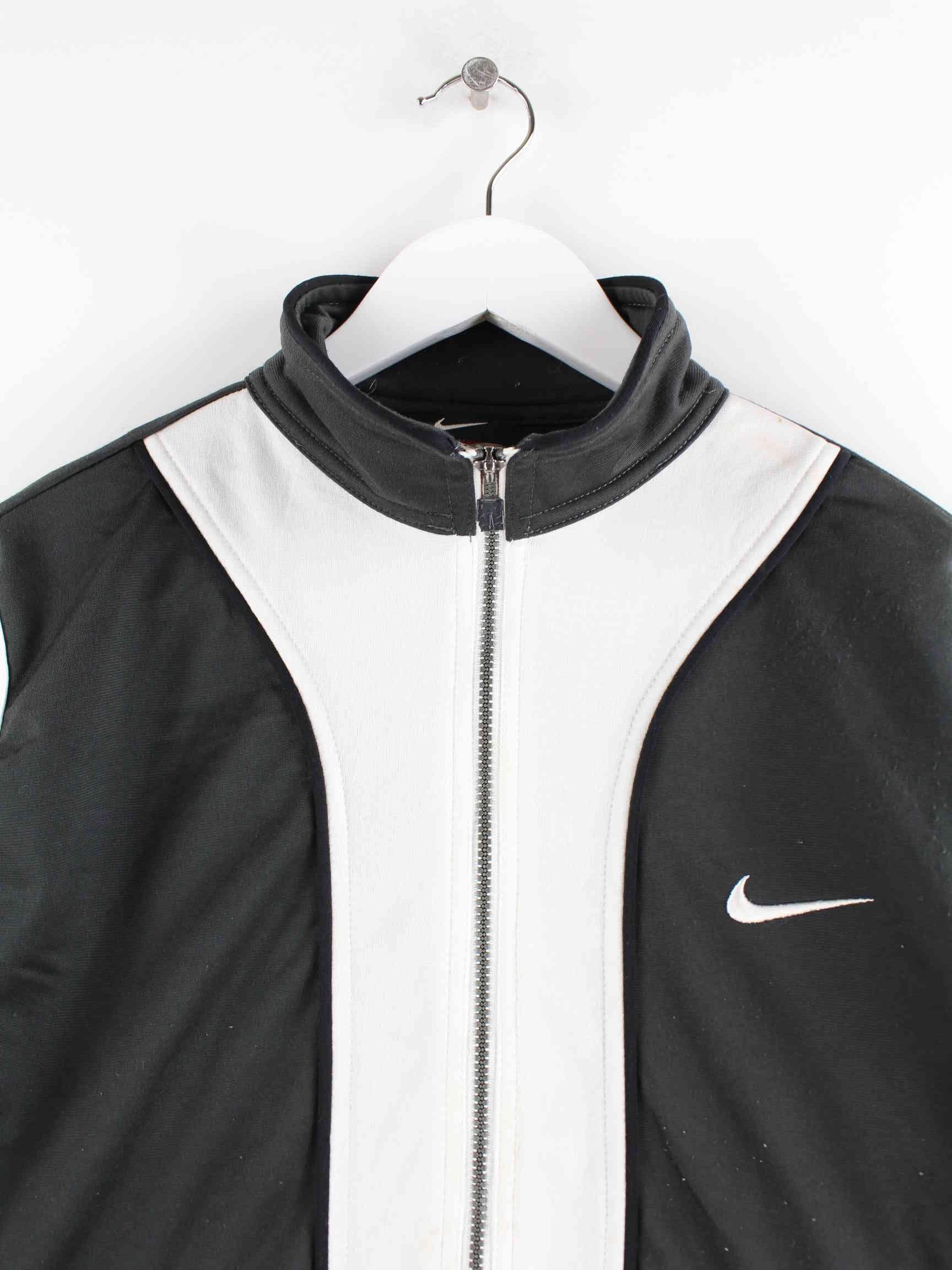 Gray training jacket with embroidery from Nike from the 90's in size XS. It is made of synthetic material and is available from us in good condition.