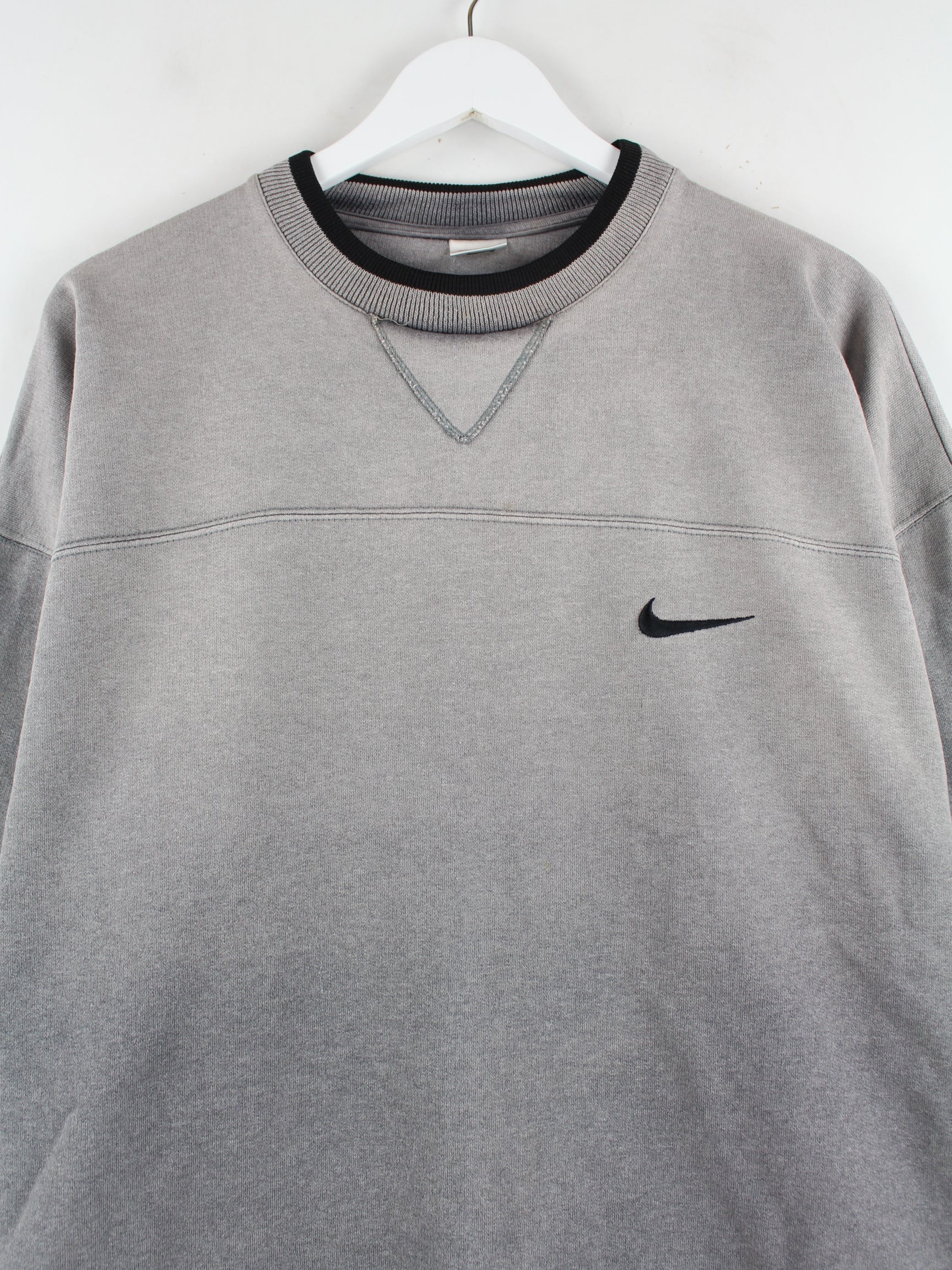 Sweater aus dem Hause Nike in Größe L aus den 90'ern. Er ist aus einer Baumwollmischung und in Grau im Bestand.