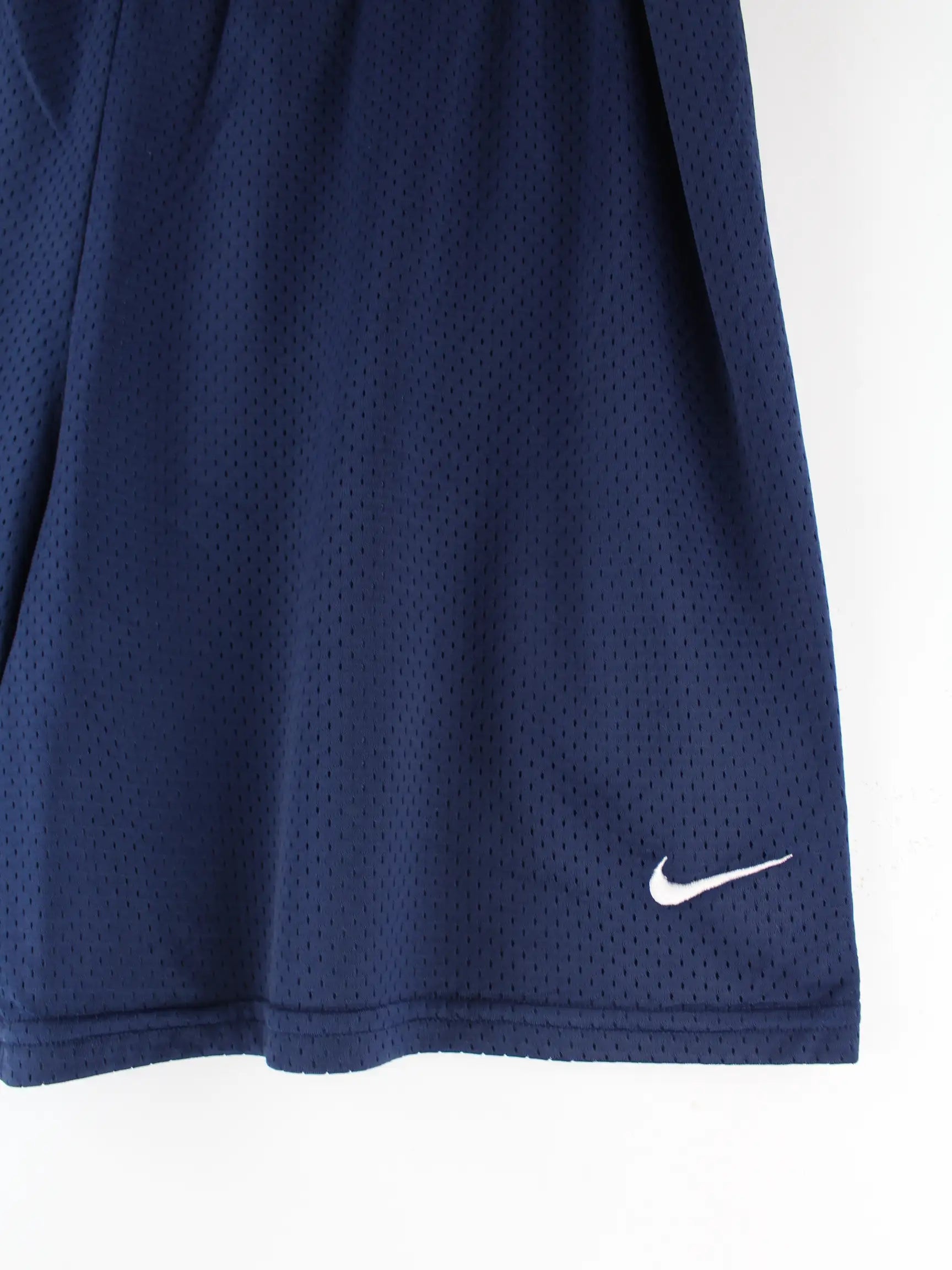 Blaue Shorts der Brand Nike aus den 90'ern in Größe L. Sie sind aus Synthetik hergestellt und in sehr gutem Zustand im Bestand.