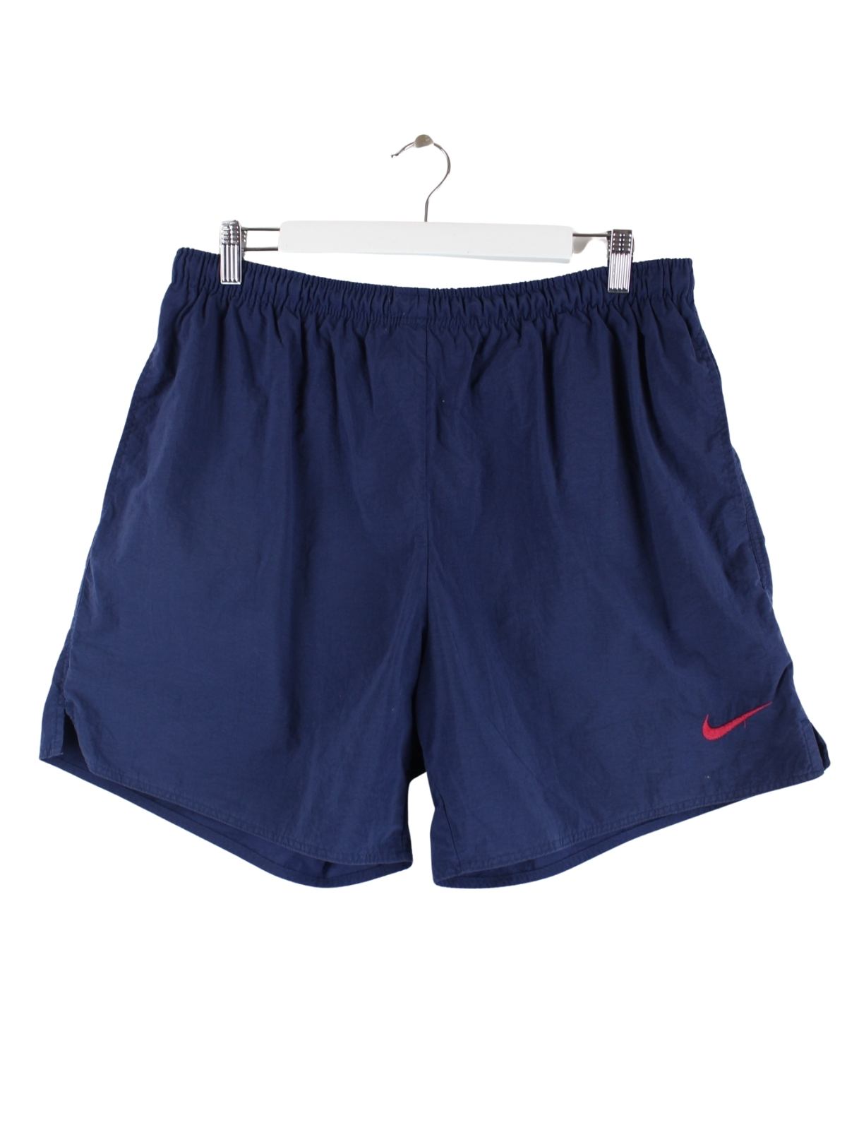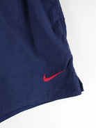 Shorts der Marke Nike in Größe M aus den 90'ern. Sie sind aus Synthetik angefertigt und in Blau bei uns zu bekommen. Mit Schickeem Swoosh Print.
