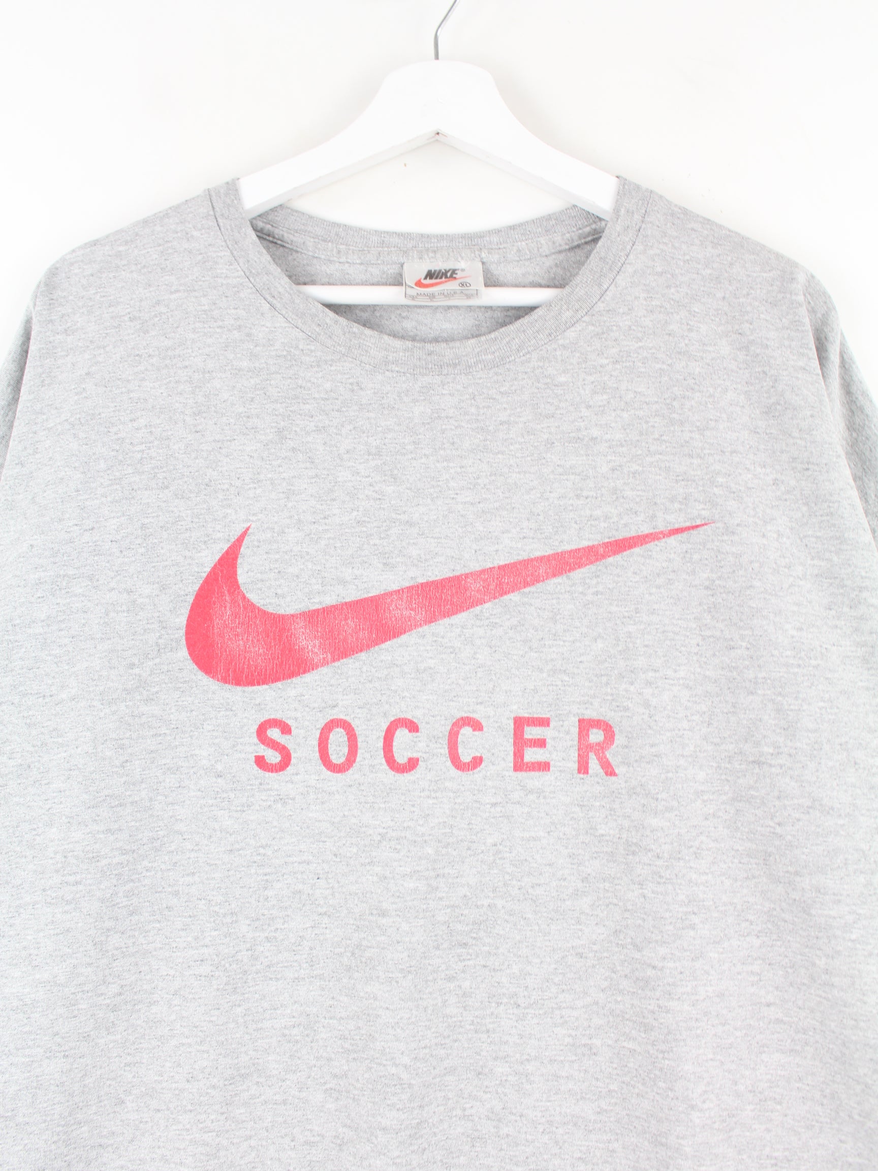 T-shirt by Nike in size XL from the 90's. It is made of cotton and comes in grey. With a nice soccer print.