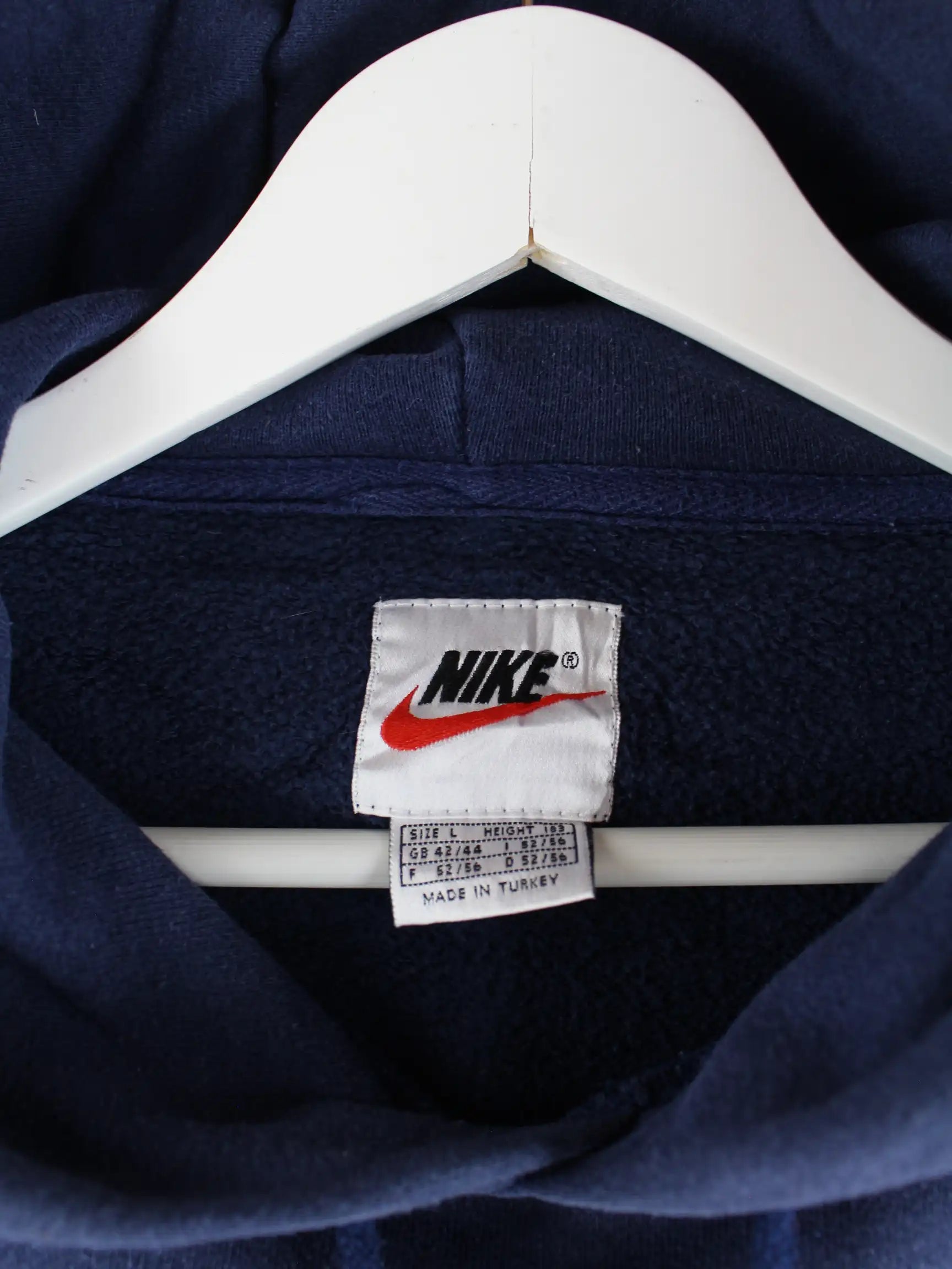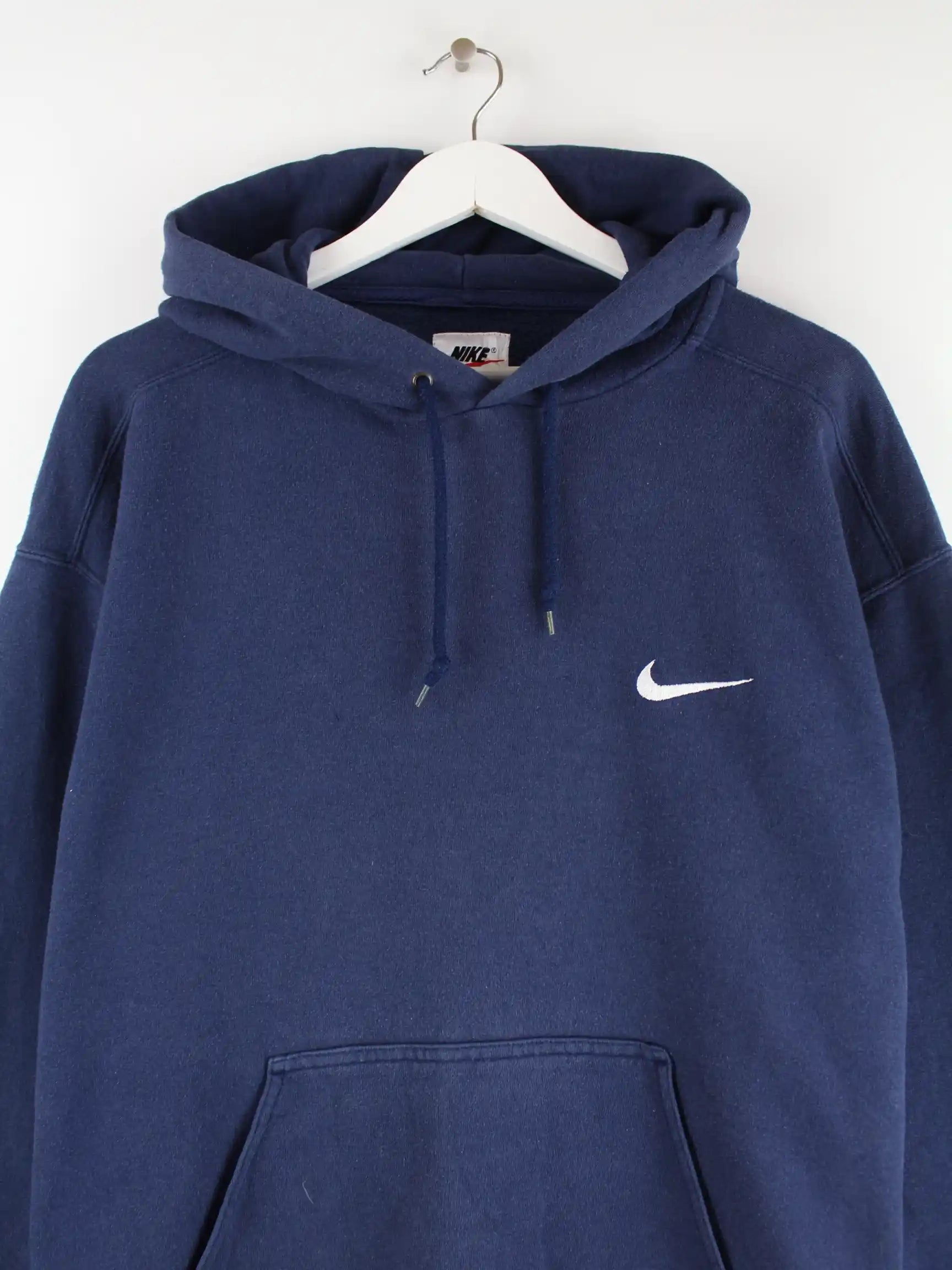 Blauer Hoodie von Nike aus den 90'ern in Größe L. Er ist aus einer Baumwollmischung und in gutem Zustand im Angebot.