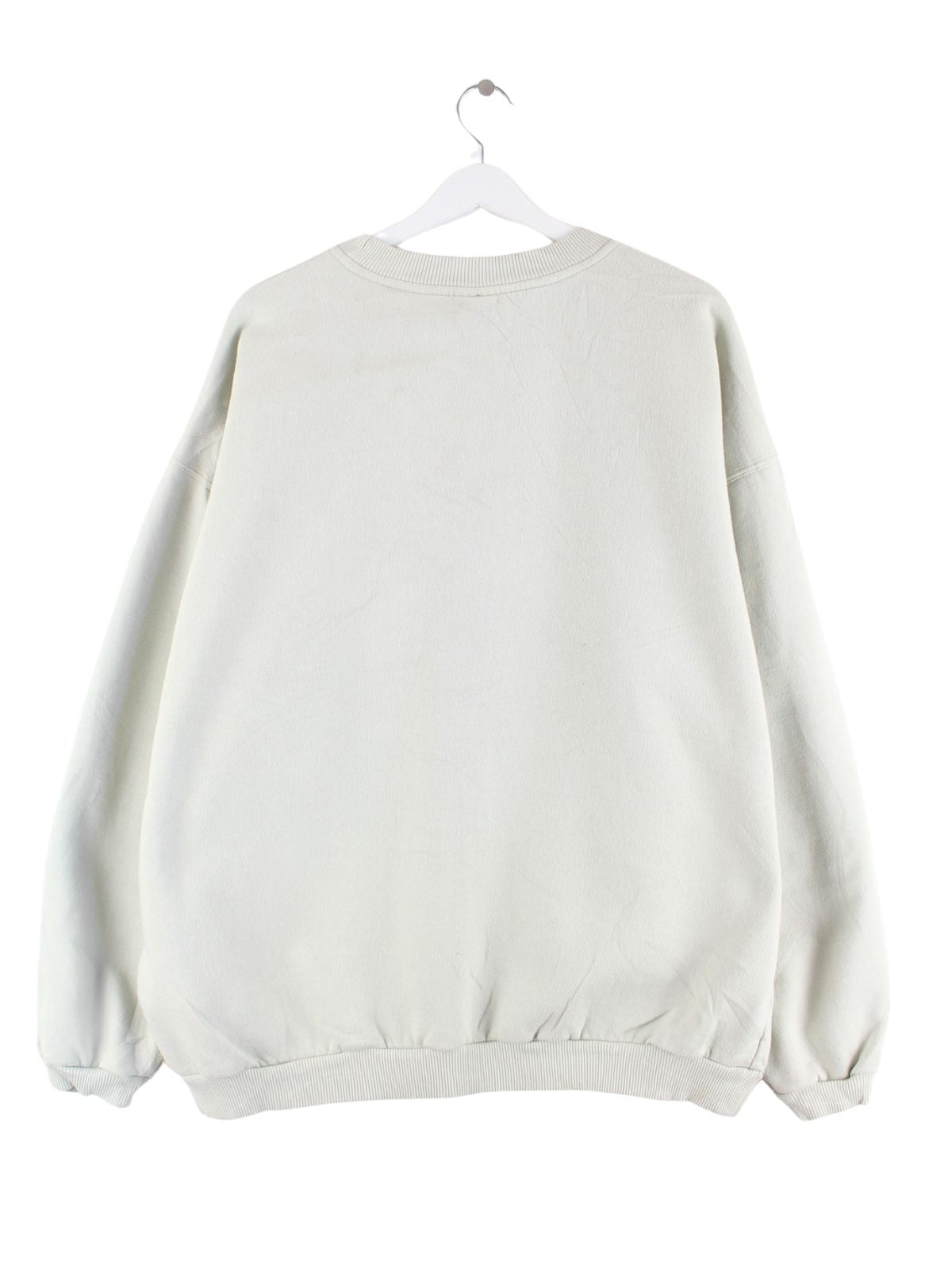 Sweater vom Label Nike mit gestickten Motiven in Größe XXL aus den 90'ern. Er ist aus einer Baumwollmischung gefertigt und in Grau bei uns vorrätig.