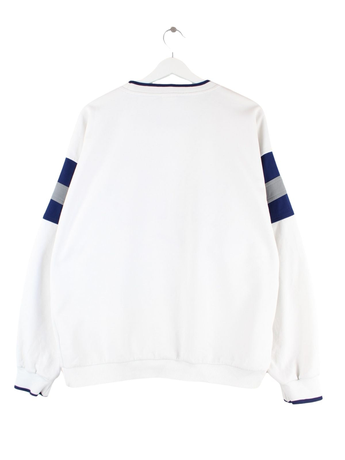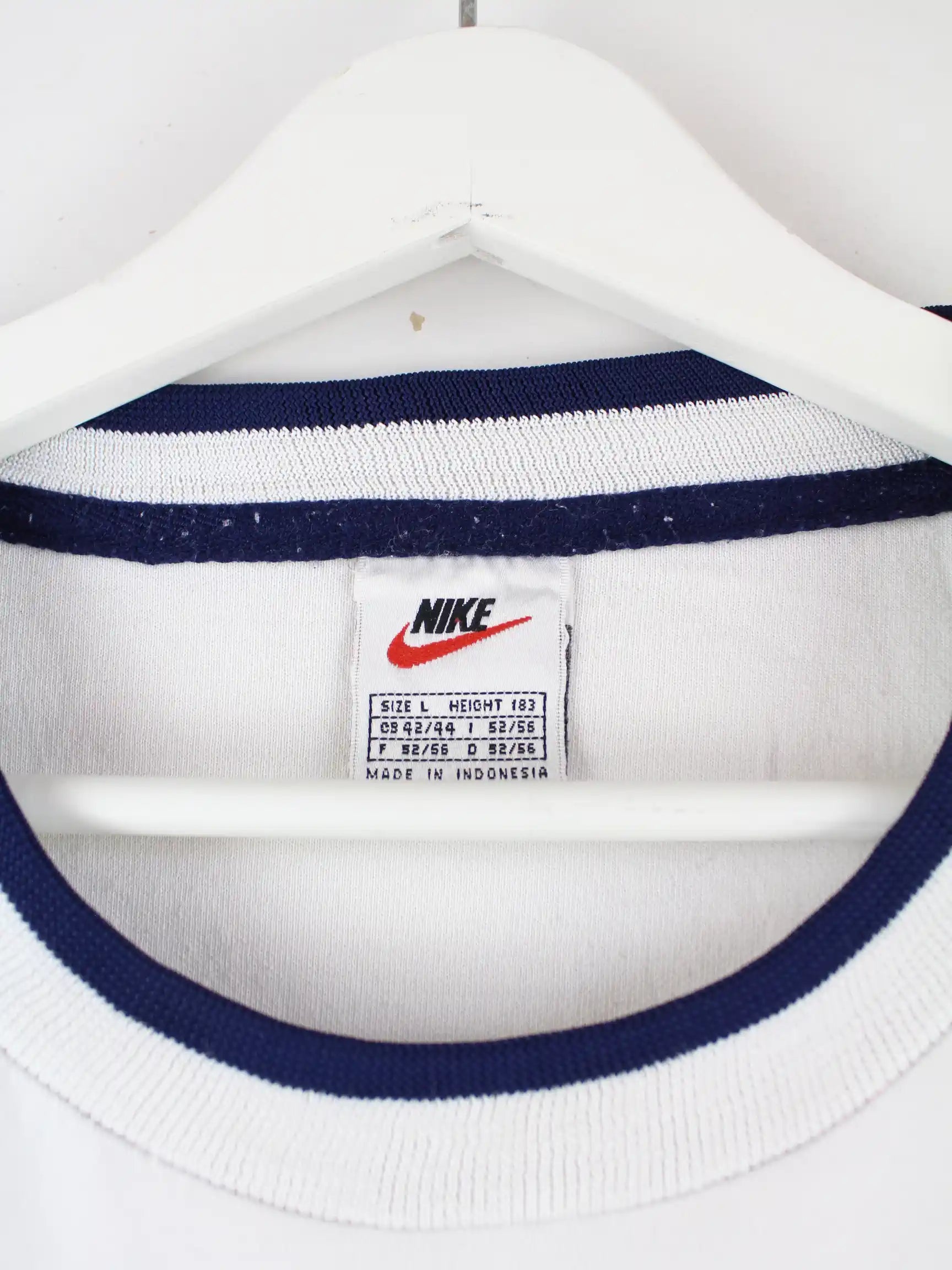 Sweater vom Brand Nike mit gesticktem Logo in Größe L aus den 90'ern. Er ist aus einer Baumwollmischung gefertigt und in Weiß zu bekommen.