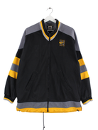 Schwarze Trainingsjacke mit gesticktem Logo der Marke Nike aus den 90'ern in Größe L. Sie ist aus Synthetik produziert und in gutem Zustand auf Lager.