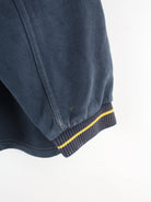 Schwarzer Sweater mit gesticktem Logo und halbem Reißverschluß der Brand Nike aus den 90'ern in Größe XL. Er ist aus einer Baumwollmischung produziert und in gutem Zustand auf Lager.