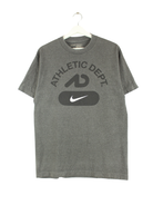 T-shirt from the brand Nike in size M. It is made from a cotton blend and is available from us in grey. With a beautiful AD print.